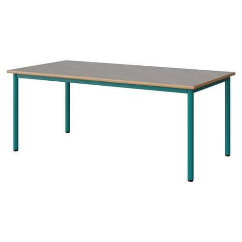 Table Malibu 160 x 80 cm stratifié chant alaisé Approche écoresponsable : oui Chants coloris : Gris clair Chants matériau : Alaisé Emballage recyclé : 80 % Environnement : Intérieur Finition : Stratifié Forme : Rectangle Fréquence d'utilisation : Régulière Garantie client : 15 ans Hauteur : 64 cm Licence PEFC : 10311712 Livré monté : non Longueur : 160 cm Piétement coloris : Bleu Piétement matériau : Acier Plateau coloris : Gris clair Plateau épaisseur : 21 mm Plateau matériau : Aggloméré Poids : 30.5 kg Produit recyclé : 80 % Profondeur : 80 cm Taille mobilier : T4 Type de piétement : 4 pieds Usage : Collectivité Table Malibu avec plateau aggloméré stratifié, épaisseur 21 mm, chant alaisé. Contrebalancement stratifié sous plateau blanc. Piètement et structure sous plateau tube acier. Soudure avec apport de matière. Embouts avec verins de réglage en polyéthylène noir non tachant, non marquant. Poudre époxy. Fabriqué en Nouvelle Aquitaine. Table Malibu 160 x 80 cm, Longueur: 160 cm, Profondeur: 80 cm, Plateau matériau: Aggloméré, Piétement coloris: Bleu, Plateau coloris: Gris clair, Hauteur: 64 cm, Type de piétement: 4 pieds, Finition: Stratifié, Chants coloris: Gris clair, Livré monté: non, Chants matériau: Alaisé, Taille mobilier: T4, Fréquence d'utilisation: Régulière, Emballage recyclé: 80 %, Produit recyclé: 80 %, Piétement matériau: Acier, Approche écoresponsable: oui, Poids: 30.5 kg, Usage: Collectivité, Plateau épaisseur: 21 mm, Forme: Rectangle, Licence PEFC: 10311712