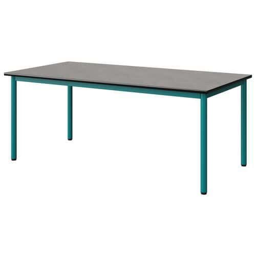 Table Malibu 160 x 80 cm stratifié chant surmoulé Approche écoresponsable : oui Chants coloris : Noir Chants matériau : Surmoulé Emballage recyclé : 80 % Environnement : Intérieur Finition : Stratifié Forme : Rectangle Fréquence d'utilisation : Régulière Garantie client : 15 ans Hauteur : 64 cm Licence PEFC : 10311712 Livré monté : non Longueur : 160 cm Piétement coloris : Bleu Piétement matériau : Acier Plateau coloris : Gris clair Plateau épaisseur : 21 mm Plateau matériau : Aggloméré Poids : 30.8 kg Produit recyclé : 80 % Profondeur : 80 cm Taille mobilier : T4 Type de piétement : 4 pieds Usage : Collectivité Table Malibu avec plateau aggloméré stratifié, épaisseur 21 mm, chant surmoulé. Contrebalancement stratifié sous plateau blanc. Piètement et structure sous plateau tube acier. Soudure avec apport de matière. Embouts avec verins de réglage en polyéthylène noir non tachant, non marquant. Poudre époxy. Fabriqué en Nouvelle Aquitaine. Table Malibu 160 x 80 cm, Longueur: 160 cm, Profondeur: 80 cm, Plateau matériau: Aggloméré, Piétement coloris: Bleu, Plateau coloris: Gris clair, Hauteur: 64 cm, Type de piétement: 4 pieds, Finition: Stratifié, Chants coloris: Noir, Livré monté: non, Chants matériau: Surmoulé, Taille mobilier: T4, Fréquence d'utilisation: Régulière, Emballage recyclé: 80 %, Produit recyclé: 80 %, Piétement matériau: Acier, Approche écoresponsable: oui, Poids: 30.8 kg, Usage: Collectivité, Plateau épaisseur: 21 mm, Forme: Rectangle, Licence PEFC: 10311712