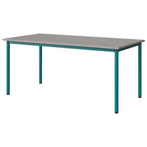 Table Malibu 160 x 80 cm stratifié chant ABS Approche écoresponsable : oui Chants coloris : Gris clair Chants matériau : ABS Emballage recyclé : 80 % Environnement : Intérieur Finition : Stratifié Forme : Rectangle Fréquence d'utilisation : Régulière Garantie client : 15 ans Hauteur : 71 cm Licence PEFC : 10311712 Livré monté : non Longueur : 160 cm Piétement coloris : Bleu Piétement matériau : Acier Plateau coloris : Gris clair Plateau épaisseur : 21 mm Plateau matériau : Aggloméré Poids : 30.6 kg Produit recyclé : 80 % Profondeur : 80 cm Taille mobilier : T5 Type de piétement : 4 pieds Usage : Collectivité Table Malibu avec plateau aggloméré stratifié, épaisseur 21 mm, chant ABS. Contrebalancement stratifié sous plateau blanc. Piètement et structure sous plateau tube acier. Soudure avec apport de matière. Embouts avec verins de réglage en polyéthylène noir non tachant, non marquant. Poudre époxy. Fabriqué en Nouvelle Aquitaine. Table Malibu 160 x 80 cm, Longueur: 160 cm, Profondeur: 80 cm, Plateau matériau: Aggloméré, Piétement coloris: Bleu, Plateau coloris: Gris clair, Hauteur: 71 cm, Type de piétement: 4 pieds, Finition: Stratifié, Chants coloris: Gris clair, Livré monté: non, Chants matériau: ABS, Taille mobilier: T5, Fréquence d'utilisation: Régulière, Emballage recyclé: 80 %, Produit recyclé: 80 %, Piétement matériau: Acier, Approche écoresponsable: oui, Poids: 30.6 kg, Usage: Collectivité, Plateau épaisseur: 21 mm, Forme: Rectangle, Licence PEFC: 10311712