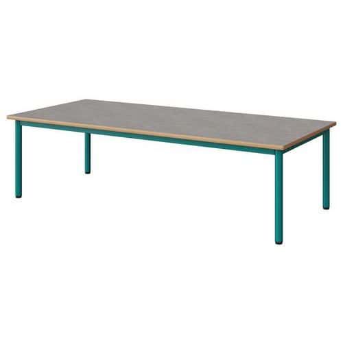 Table Malibu 180 x 80 cm stratifié chant alaisé Approche écoresponsable : oui Chants coloris : Gris clair Chants matériau : Alaisé Emballage recyclé : 80 % Environnement : Intérieur Finition : Stratifié Forme : Rectangle Fréquence d'utilisation : Régulière Garantie client : 15 ans Hauteur : 46 cm Licence PEFC : 10311712 Livré monté : non Longueur : 180 cm Piétement coloris : Bleu Piétement matériau : Acier Plateau coloris : Gris clair Plateau épaisseur : 21 mm Plateau matériau : Aggloméré Poids : 32.1 kg Produit recyclé : 80 % Profondeur : 80 cm Taille mobilier : T1 Type de piétement : 4 pieds Usage : Collectivité Table Malibu avec plateau aggloméré stratifié, épaisseur 21 mm, chant alaisé. Contrebalancement stratifié sous plateau blanc. Piètement et structure sous plateau tube acier. Soudure avec apport de matière. Embouts avec verins de réglage en polyéthylène noir non tachant, non marquant. Poudre époxy. Fabriqué en Nouvelle Aquitaine. Table Malibu 180 x 80 cm, Longueur: 180 cm, Profondeur: 80 cm, Plateau matériau: Aggloméré, Piétement coloris: Bleu, Plateau coloris: Gris clair, Hauteur: 46 cm, Type de piétement: 4 pieds, Finition: Stratifié, Chants coloris: Gris clair, Livré monté: non, Chants matériau: Alaisé, Taille mobilier: T1, Fréquence d'utilisation: Régulière, Emballage recyclé: 80 %, Produit recyclé: 80 %, Piétement matériau: Acier, Approche écoresponsable: oui, Poids: 32.1 kg, Usage: Collectivité, Plateau épaisseur: 21 mm, Forme: Rectangle, Licence PEFC: 10311712