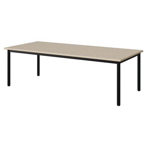 Table Malibu 180 x 80 cm stratifié isoson chant surmoulé Approche écoresponsable : oui Chants coloris : Beige Chants matériau : Surmoulé Emballage recyclé : 80 % Environnement : Intérieur Finition : Stratifié isoson Forme : Rectangle Fréquence d'utilisation : Régulière Garantie client : 15 ans Hauteur : 53 cm Licence PEFC : 10311712 Livré monté : non Longueur : 180 cm Piétement coloris : Noir Piétement matériau : Acier Plateau coloris : Beige Plateau épaisseur : 21 mm Plateau matériau : Aggloméré Poids : 32.8 kg Produit recyclé : 80 % Profondeur : 80 cm Taille mobilier : T2 Type de piétement : 4 pieds Usage : Collectivité Table Malibu plateau aggloméré stratifié épaisseur 21 mm, isoson, avec revêtement souple de 3 mm sur le dessus, permettant de réduire le bruit jusqu'à 15db. Chant surmoulé. Contrebalancement stratifié sous plateau blanc. Piètement et structure sous plateau tube acier. Soudure avec apport de matière. Embouts avec verins de réglage en polyéthylène noir non tachant, non marquant. Poudre époxy. Fabriqué en Nouvelle Aquitaine. Table Malibu 180 x 80 cm, Longueur: 180 cm, Profondeur: 80 cm, Plateau matériau: Aggloméré, Piétement coloris: Noir, Plateau coloris: Beige, Hauteur: 53 cm, Type de piétement: 4 pieds, Finition: Stratifié isoson, Chants coloris: Beige, Livré monté: non, Chants matériau: Surmoulé, Taille mobilier: T2, Fréquence d'utilisation: Régulière, Emballage recyclé: 80 %, Produit recyclé: 80 %, Piétement matériau: Acier, Approche écoresponsable: oui, Poids: 32.8 kg, Usage: Collectivité, Plateau épaisseur: 21 mm, Forme: Rectangle, Licence PEFC: 10311712