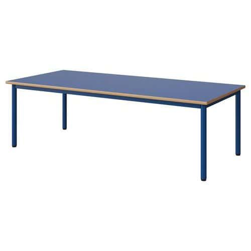 Table Malibu 180 x 80 cm stratifié chant alaisé Approche écoresponsable : oui Chants coloris : Bleu Chants matériau : Alaisé Emballage recyclé : 80 % Environnement : Intérieur Finition : Stratifié Forme : Rectangle Fréquence d'utilisation : Régulière Garantie client : 15 ans Hauteur : 53 cm Licence PEFC : 10311712 Livré monté : non Longueur : 180 cm Piétement coloris : Bleu Piétement matériau : Acier Plateau coloris : Bleu Plateau épaisseur : 21 mm Plateau matériau : Aggloméré Poids : 32.6 kg Produit recyclé : 80 % Profondeur : 80 cm Taille mobilier : T2 Type de piétement : 4 pieds Usage : Collectivité Table Malibu avec plateau aggloméré stratifié, épaisseur 21 mm, chant alaisé. Contrebalancement stratifié sous plateau blanc. Piètement et structure sous plateau tube acier. Soudure avec apport de matière. Embouts avec verins de réglage en polyéthylène noir non tachant, non marquant. Poudre époxy. Fabriqué en Nouvelle Aquitaine. Table Malibu 180 x 80 cm, Longueur: 180 cm, Profondeur: 80 cm, Plateau matériau: Aggloméré, Piétement coloris: Bleu, Plateau coloris: Bleu, Hauteur: 53 cm, Type de piétement: 4 pieds, Finition: Stratifié, Chants coloris: Bleu, Livré monté: non, Chants matériau: Alaisé, Taille mobilier: T2, Fréquence d'utilisation: Régulière, Emballage recyclé: 80 %, Produit recyclé: 80 %, Piétement matériau: Acier, Approche écoresponsable: oui, Poids: 32.6 kg, Usage: Collectivité, Plateau épaisseur: 21 mm, Forme: Rectangle, Licence PEFC: 10311712