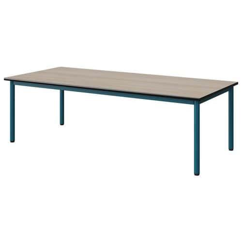 Table Malibu 180 x 80 cm stratifié antibruit chant surmoulé Approche écoresponsable : oui Chants coloris : Noir Chants matériau : Surmoulé Emballage recyclé : 80 % Environnement : Intérieur Finition : Stratifié antibruit Forme : Rectangle Fréquence d'utilisation : Régulière Garantie client : 15 ans Hauteur : 53 cm Licence PEFC : 10311712 Livré monté : non Longueur : 180 cm Piétement coloris : Bleu Piétement matériau : Acier Plateau coloris : Acacia Plateau épaisseur : 21 mm Plateau matériau : Aggloméré Poids : 32 kg Produit recyclé : 80 % Profondeur : 80 cm Taille mobilier : T2 Type de piétement : 4 pieds Usage : Collectivité Table Malibu plateau aggloméré stratifié, épaisseur 21 mm, antibruit, renforcé par du liège (3 mm) permettant la réduction du bruit de 9db. Chant surmoulé. Contrebalancement stratifié sous plateau blanc. Piètement et structure sous plateau tube acier. Soudure avec apport de matière. Embouts avec verins de réglage en polyéthylène noir non tachant, non marquant. Poudre époxy. Fabriqué en Nouvelle Aquitaine. Table Malibu 180 x 80 cm, Longueur: 180 cm, Profondeur: 80 cm, Plateau matériau: Aggloméré, Piétement coloris: Bleu, Plateau coloris: Acacia, Hauteur: 53 cm, Type de piétement: 4 pieds, Finition: Stratifié antibruit, Chants coloris: Noir, Livré monté: non, Chants matériau: Surmoulé, Taille mobilier: T2, Fréquence d'utilisation: Régulière, Emballage recyclé: 80 %, Produit recyclé: 80 %, Piétement matériau: Acier, Approche écoresponsable: oui, Poids: 32 kg, Usage: Collectivité, Plateau épaisseur: 21 mm, Forme: Rectangle, Licence PEFC: 10311712