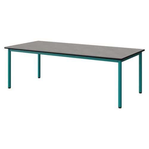Table Malibu 180 x 80 cm stratifié antibruit chant surmoulé Approche écoresponsable : oui Chants coloris : Noir Chants matériau : Surmoulé Emballage recyclé : 80 % Environnement : Intérieur Finition : Stratifié antibruit Forme : Rectangle Fréquence d'utilisation : Régulière Garantie client : 15 ans Hauteur : 59 cm Licence PEFC : 10311712 Livré monté : non Longueur : 180 cm Piétement coloris : Bleu Piétement matériau : Acier Plateau coloris : Gris clair Plateau épaisseur : 21 mm Plateau matériau : Aggloméré Poids : 32.5 kg Produit recyclé : 80 % Profondeur : 80 cm Taille mobilier : T3 Type de piétement : 4 pieds Usage : Collectivité Table Malibu plateau aggloméré stratifié, épaisseur 21 mm, antibruit, renforcé par du liège (3 mm) permettant la réduction du bruit de 9db. Chant surmoulé. Contrebalancement stratifié sous plateau blanc. Piètement et structure sous plateau tube acier. Soudure avec apport de matière. Embouts avec verins de réglage en polyéthylène noir non tachant, non marquant. Poudre époxy. Fabriqué en Nouvelle Aquitaine. Table Malibu 180 x 80 cm, Longueur: 180 cm, Profondeur: 80 cm, Plateau matériau: Aggloméré, Piétement coloris: Bleu, Plateau coloris: Gris clair, Hauteur: 59 cm, Type de piétement: 4 pieds, Finition: Stratifié antibruit, Chants coloris: Noir, Livré monté: non, Chants matériau: Surmoulé, Taille mobilier: T3, Fréquence d'utilisation: Régulière, Emballage recyclé: 80 %, Produit recyclé: 80 %, Piétement matériau: Acier, Approche écoresponsable: oui, Poids: 32.5 kg, Usage: Collectivité, Plateau épaisseur: 21 mm, Forme: Rectangle, Licence PEFC: 10311712