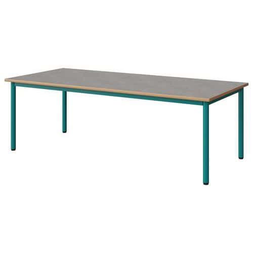Table Malibu 180 x 80 cm stratifié chant alaisé Approche écoresponsable : oui Chants coloris : Gris clair Chants matériau : Alaisé Emballage recyclé : 80 % Environnement : Intérieur Finition : Stratifié Forme : Rectangle Fréquence d'utilisation : Régulière Garantie client : 15 ans Hauteur : 59 cm Licence PEFC : 10311712 Livré monté : non Longueur : 180 cm Piétement coloris : Bleu Piétement matériau : Acier Plateau coloris : Gris clair Plateau épaisseur : 21 mm Plateau matériau : Aggloméré Poids : 33.1 kg Produit recyclé : 80 % Profondeur : 80 cm Taille mobilier : T3 Type de piétement : 4 pieds Usage : Collectivité Table Malibu avec plateau aggloméré stratifié, épaisseur 21 mm, chant alaisé. Contrebalancement stratifié sous plateau blanc. Piètement et structure sous plateau tube acier. Soudure avec apport de matière. Embouts avec verins de réglage en polyéthylène noir non tachant, non marquant. Poudre époxy. Fabriqué en Nouvelle Aquitaine. Table Malibu 180 x 80 cm, Longueur: 180 cm, Profondeur: 80 cm, Plateau matériau: Aggloméré, Piétement coloris: Bleu, Plateau coloris: Gris clair, Hauteur: 59 cm, Type de piétement: 4 pieds, Finition: Stratifié, Chants coloris: Gris clair, Livré monté: non, Chants matériau: Alaisé, Taille mobilier: T3, Fréquence d'utilisation: Régulière, Emballage recyclé: 80 %, Produit recyclé: 80 %, Piétement matériau: Acier, Approche écoresponsable: oui, Poids: 33.1 kg, Usage: Collectivité, Plateau épaisseur: 21 mm, Forme: Rectangle, Licence PEFC: 10311712