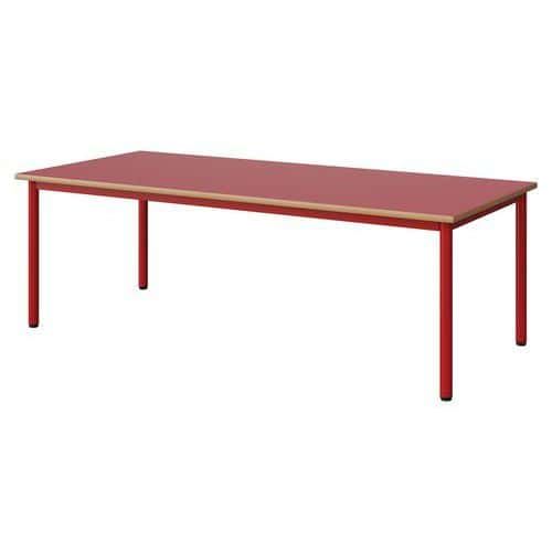 Table Malibu 180 x 80 cm stratifié chant alaisé Approche écoresponsable : oui Chants coloris : Rouge Chants matériau : Alaisé Emballage recyclé : 80 % Environnement : Intérieur Finition : Stratifié Forme : Rectangle Fréquence d'utilisation : Régulière Garantie client : 15 ans Hauteur : 59 cm Licence PEFC : 10311712 Livré monté : non Longueur : 180 cm Piétement coloris : Rouge Piétement matériau : Acier Plateau coloris : Rouge Plateau épaisseur : 21 mm Plateau matériau : Aggloméré Poids : 33.1 kg Produit recyclé : 80 % Profondeur : 80 cm Taille mobilier : T3 Type de piétement : 4 pieds Usage : Collectivité Table Malibu avec plateau aggloméré stratifié, épaisseur 21 mm, chant alaisé. Contrebalancement stratifié sous plateau blanc. Piètement et structure sous plateau tube acier. Soudure avec apport de matière. Embouts avec verins de réglage en polyéthylène noir non tachant, non marquant. Poudre époxy. Fabriqué en Nouvelle Aquitaine. Table Malibu 180 x 80 cm, Longueur: 180 cm, Profondeur: 80 cm, Plateau matériau: Aggloméré, Piétement coloris: Rouge, Plateau coloris: Rouge, Hauteur: 59 cm, Type de piétement: 4 pieds, Finition: Stratifié, Chants coloris: Rouge, Livré monté: non, Chants matériau: Alaisé, Taille mobilier: T3, Fréquence d'utilisation: Régulière, Emballage recyclé: 80 %, Produit recyclé: 80 %, Piétement matériau: Acier, Approche écoresponsable: oui, Poids: 33.1 kg, Usage: Collectivité, Plateau épaisseur: 21 mm, Forme: Rectangle, Licence PEFC: 10311712