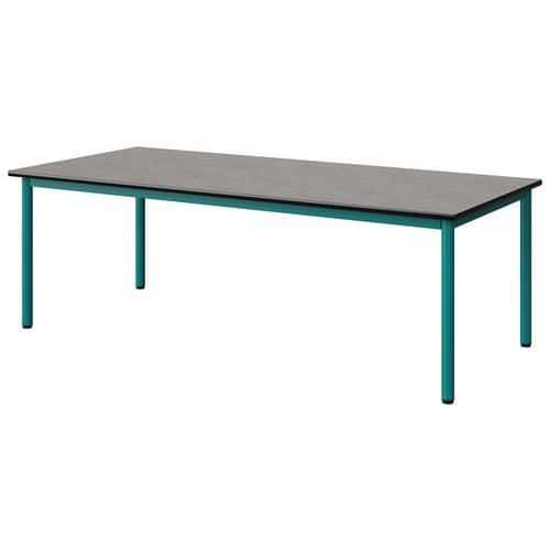 Table Malibu 180 x 80 cm stratifié chant surmoulé Approche écoresponsable : oui Chants coloris : Noir Chants matériau : Surmoulé Emballage recyclé : 80 % Environnement : Intérieur Finition : Stratifié Forme : Rectangle Fréquence d'utilisation : Régulière Garantie client : 15 ans Hauteur : 59 cm Licence PEFC : 10311712 Livré monté : non Longueur : 180 cm Piétement coloris : Bleu Piétement matériau : Acier Plateau coloris : Gris clair Plateau épaisseur : 21 mm Plateau matériau : Aggloméré Poids : 33.5 kg Produit recyclé : 80 % Profondeur : 80 cm Taille mobilier : T3 Type de piétement : 4 pieds Usage : Collectivité Table Malibu avec plateau aggloméré stratifié, épaisseur 21 mm, chant surmoulé. Contrebalancement stratifié sous plateau blanc. Piètement et structure sous plateau tube acier. Soudure avec apport de matière. Embouts avec verins de réglage en polyéthylène noir non tachant, non marquant. Poudre époxy. Fabriqué en Nouvelle Aquitaine. Table Malibu 180 x 80 cm, Longueur: 180 cm, Profondeur: 80 cm, Plateau matériau: Aggloméré, Piétement coloris: Bleu, Plateau coloris: Gris clair, Hauteur: 59 cm, Type de piétement: 4 pieds, Finition: Stratifié, Chants coloris: Noir, Livré monté: non, Chants matériau: Surmoulé, Taille mobilier: T3, Fréquence d'utilisation: Régulière, Emballage recyclé: 80 %, Produit recyclé: 80 %, Piétement matériau: Acier, Approche écoresponsable: oui, Poids: 33.5 kg, Usage: Collectivité, Plateau épaisseur: 21 mm, Forme: Rectangle, Licence PEFC: 10311712