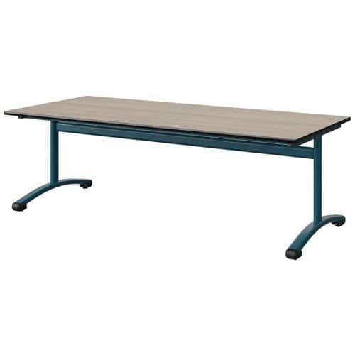 Table Malibu 180 x 80 cm DL stratifié antibruit chant surmoulé Approche écoresponsable : oui Chants coloris : Noir Chants matériau : Surmoulé Dégagement latéral : oui Emballage recyclé : 80 % Environnement : Intérieur Finition : Stratifié antibruit Forme : Rectangle Fréquence d'utilisation : Régulière Garantie client : 15 ans Hauteur : 59 cm Licence PEFC : 10311712 Livré monté : oui Longueur : 180 cm Piétement coloris : Bleu Piétement matériau : Acier Plateau coloris : Acacia Plateau épaisseur : 21 mm Plateau matériau : Aggloméré Poids : 37 kg Produit recyclé : 80 % Profondeur : 80 cm Taille mobilier : T3 Type de piétement : 2 pieds Usage : Collectivité Table Malibu à dégagement latéral, plateau aggloméré stratifié, épaisseur 21 mm, antibruit, renforcé par du liège (3 mm) permettant la réduction du bruit de 9db. Chant surmoulé. Contrebalancement stratifié sous plateau blanc. Piètement et structure sous plateau tube acier. Soudure avec apport de matière. Embouts avec verins de réglage en polyéthylène noir non tachant, non marquant. Poudre époxy. Fabriqué en Nouvelle Aquitaine. Table Malibu 180 x 80 cm, Longueur: 180 cm, Profondeur: 80 cm, Plateau matériau: Aggloméré, Piétement coloris: Bleu, Plateau coloris: Acacia, Hauteur: 59 cm, Type de piétement: 2 pieds, Finition: Stratifié antibruit, Chants coloris: Noir, Dégagement latéral: oui, Livré monté: oui, Chants matériau: Surmoulé, Taille mobilier: T3, Fréquence d'utilisation: Régulière, Emballage recyclé: 80 %, Produit recyclé: 80 %, Piétement matériau: Acier, Approche écoresponsable: oui, Poids: 37 kg, Usage: Collectivité, Plateau épaisseur: 21 mm, Forme: Rectangle, Licence PEFC: 10311712