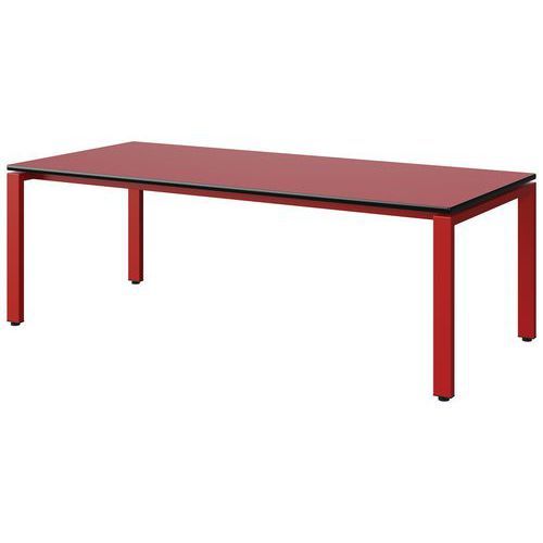 Table Malibu 180x80 cm 4P soudés stratifié antibruit chant surmoulé Approche écoresponsable : oui Chants coloris : Noir Chants matériau : Surmoulé Emballage recyclé : 80 % Environnement : Intérieur Finition : Stratifié antibruit Forme : Rectangle Fréquence d'utilisation : Régulière Garantie client : 15 ans Hauteur : 59 cm Licence PEFC : 10311712 Livré monté : oui Longueur : 180 cm Piétement coloris : Rouge Piétement matériau : Acier Plateau coloris : Rouge Plateau épaisseur : 21 mm Plateau matériau : Aggloméré Poids : 29.8 kg Produit recyclé : 80 % Profondeur : 80 cm Taille mobilier : T3 Type de piétement : 4 pieds Usage : Collectivité Table Malibu plateau aggloméré stratifié, épaisseur 21 mm, antibruit, renforcé par du liège (3 mm) permettant la réduction du bruit de 9db. Chant surmoulé. Contrebalancement stratifié sous plateau blanc. Piètement et renforts sous plateau tube acier. Structure monobloc soudée avec apport de matière. Embouts avec verins de réglage en polyéthylène noir non tachant, non marquant. Poudre époxy. Fabriqué en Nouvelle Aquitaine. Table Malibu 180x80 cm 4P soudés, Longueur: 180 cm, Profondeur: 80 cm, Plateau matériau: Aggloméré, Piétement coloris: Rouge, Plateau coloris: Rouge, Hauteur: 59 cm, Type de piétement: 4 pieds, Finition: Stratifié antibruit, Chants coloris: Noir, Livré monté: oui, Chants matériau: Surmoulé, Taille mobilier: T3, Fréquence d'utilisation: Régulière, Emballage recyclé: 80 %, Produit recyclé: 80 %, Piétement matériau: Acier, Approche écoresponsable: oui, Poids: 29.8 kg, Usage: Collectivité, Plateau épaisseur: 21 mm, Forme: Rectangle, Licence PEFC: 10311712