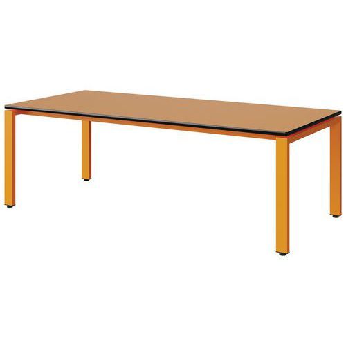 Table Malibu 180 x 80 cm pieds soudés stratifié chant surmoulé Approche écoresponsable : oui Chants coloris : Noir Chants matériau : Surmoulé Emballage recyclé : 80 % Environnement : Intérieur Finition : Stratifié Forme : Rectangle Fréquence d'utilisation : Régulière Garantie client : 15 ans Hauteur : 59 cm Licence PEFC : 10311712 Livré monté : oui Longueur : 180 cm Piétement coloris : Orange Piétement matériau : Acier Plateau coloris : Orange Plateau épaisseur : 21 mm Plateau matériau : Aggloméré Poids : 30.8 kg Produit recyclé : 80 % Profondeur : 80 cm Taille mobilier : T3 Type de piétement : 4 pieds Usage : Collectivité Table Malibu avec plateau aggloméré stratifié, épaisseur 21 mm, chant surmoulé. Contrebalancement stratifié sous plateau blanc. Piètement et renforts sous plateau tube acier. Structure monobloc soudée avec apport de matière. Embouts avec verins de réglage en polyéthylène noir non tachant, non marquant. Poudre époxy. Fabriqué en Nouvelle Aquitaine. Table Malibu 180 x 80 cm pieds soudés, Longueur: 180 cm, Profondeur: 80 cm, Plateau matériau: Aggloméré, Piétement coloris: Orange, Plateau coloris: Orange, Piétement matériau: Acier, Chants matériau: Surmoulé, Hauteur: 59 cm, Type de piétement: 4 pieds, Finition: Stratifié, Chants coloris: Noir, Livré monté: oui, Taille mobilier: T3, Fréquence d'utilisation: Régulière, Emballage recyclé: 80 %, Produit recyclé: 80 %, Approche écoresponsable: oui, Poids: 30.8 kg, Usage: Collectivité, Plateau épaisseur: 21 mm, Forme: Rectangle, Licence PEFC: 10311712