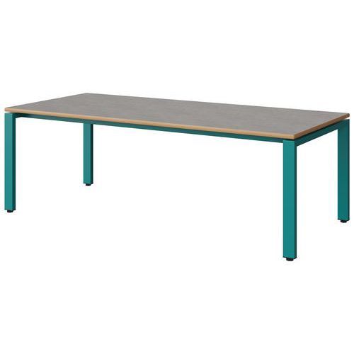 Table Malibu 180 x 80 cm pieds soudés stratifié chant alaisé Approche écoresponsable : oui Chants coloris : Gris clair Chants matériau : Alaisé Emballage recyclé : 80 % Environnement : Intérieur Finition : Stratifié Forme : Rectangle Fréquence d'utilisation : Régulière Garantie client : 15 ans Hauteur : 59 cm Licence PEFC : 10311712 Livré monté : oui Longueur : 180 cm Piétement coloris : Bleu Piétement matériau : Acier Plateau coloris : Gris clair Plateau épaisseur : 21 mm Plateau matériau : Aggloméré Poids : 30.4 kg Produit recyclé : 80 % Profondeur : 80 cm Taille mobilier : T3 Type de piétement : 4 pieds Usage : Collectivité Table Malibu avec plateau aggloméré stratifié, épaisseur 21 mm, chant alaisé. Contrebalancement stratifié sous plateau blanc. Piètement et renforts sous plateau tube acier. Structure monobloc soudée avec apport de matière. Embouts avec verins de réglage en polyéthylène noir non tachant, non marquant. Poudre époxy. Fabriqué en Nouvelle Aquitaine. Table Malibu 180 x 80 cm pieds soudés, Longueur: 180 cm, Profondeur: 80 cm, Plateau matériau: Aggloméré, Piétement coloris: Bleu, Plateau coloris: Gris clair, Hauteur: 59 cm, Type de piétement: 4 pieds, Finition: Stratifié, Chants coloris: Gris clair, Livré monté: oui, Chants matériau: Alaisé, Taille mobilier: T3, Fréquence d'utilisation: Régulière, Emballage recyclé: 80 %, Produit recyclé: 80 %, Piétement matériau: Acier, Approche écoresponsable: oui, Poids: 30.4 kg, Usage: Collectivité, Plateau épaisseur: 21 mm, Forme: Rectangle, Licence PEFC: 10311712