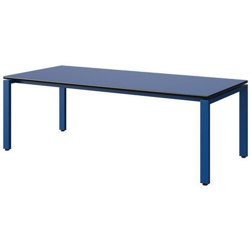 Table Malibu 180 x 80 cm pieds soudés stratifié chant surmoulé Approche écoresponsable : oui Chants coloris : Noir Chants matériau : Surmoulé Emballage recyclé : 80 % Environnement : Intérieur Finition : Stratifié Forme : Rectangle Fréquence d'utilisation : Régulière Garantie client : 15 ans Hauteur : 59 cm Licence PEFC : 10311712 Livré monté : oui Longueur : 180 cm Piétement coloris : Bleu Piétement matériau : Acier Plateau coloris : Bleu Plateau épaisseur : 21 mm Plateau matériau : Aggloméré Poids : 30.8 kg Produit recyclé : 80 % Profondeur : 80 cm Taille mobilier : T3 Type de piétement : 4 pieds Usage : Collectivité Table Malibu avec plateau aggloméré stratifié, épaisseur 21 mm, chant surmoulé. Contrebalancement stratifié sous plateau blanc. Piètement et renforts sous plateau tube acier. Structure monobloc soudée avec apport de matière. Embouts avec verins de réglage en polyéthylène noir non tachant, non marquant. Poudre époxy. Fabriqué en Nouvelle Aquitaine. Table Malibu 180 x 80 cm pieds soudés, Longueur: 180 cm, Profondeur: 80 cm, Plateau matériau: Aggloméré, Piétement coloris: Bleu, Plateau coloris: Bleu, Hauteur: 59 cm, Type de piétement: 4 pieds, Finition: Stratifié, Chants coloris: Noir, Livré monté: oui, Chants matériau: Surmoulé, Taille mobilier: T3, Fréquence d'utilisation: Régulière, Emballage recyclé: 80 %, Produit recyclé: 80 %, Piétement matériau: Acier, Approche écoresponsable: oui, Poids: 30.8 kg, Usage: Collectivité, Plateau épaisseur: 21 mm, Forme: Rectangle, Licence PEFC: 10311712