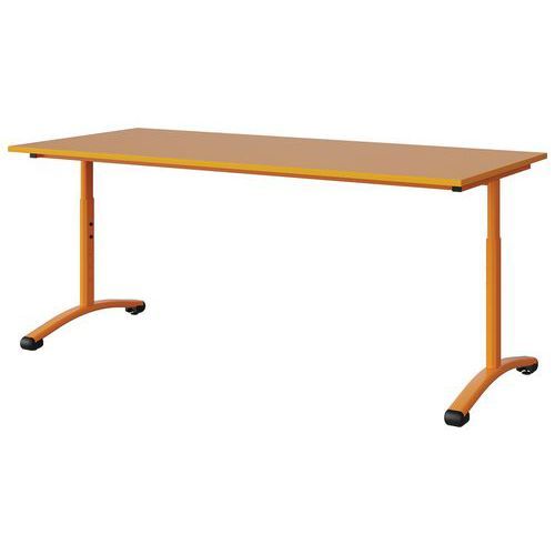 Table Malibu 180 x 80 cm réglable T3/T6 DL stratifié ABS Approche écoresponsable : oui Chants coloris : Orange Chants matériau : ABS Dégagement latéral : oui Emballage recyclé : 80 % Environnement : Intérieur Finition : Stratifié Forme : Rectangle Fréquence d'utilisation : Régulière Garantie client : 15 ans Hauteur maxi : 76 cm Hauteur réglable mini : 59 cm Licence PEFC : 10311712 Livré monté : oui Longueur : 180 cm Piétement coloris : Orange Piétement matériau : Acier Plateau coloris : Orange Plateau épaisseur : 21 mm Plateau matériau : Aggloméré Poids : 37.5 kg Produit recyclé : 80 % Profondeur : 80 cm Taille mobilier : T3T6 Type de piétement : 2 pieds Usage : Collectivité Table Malibu réglable à dégagement latéral avec plateau aggloméré stratifié, épaisseur 21 mm, chant ABS. Contrebalancement stratifié sous plateau blanc. Piètement et structure sous plateau tube acier. Réglage par vis de la T3 à T6. Soudure avec apport de matière. Embouts avec verins de réglage en polyéthylène noir non tachant, non marquant. Poudre époxy. Fabriqué en Nouvelle Aquitaine. Table Malibu 180 x 80 cm réglable T3/T6, Longueur: 180 cm, Profondeur: 80 cm, Plateau matériau: Aggloméré, Piétement coloris: Orange, Plateau coloris: Orange, Piétement matériau: Acier, Chants matériau: ABS, Type de piétement: 2 pieds, Finition: Stratifié, Chants coloris: Orange, Dégagement latéral: oui, Livré monté: oui, Taille mobilier: T3T6, Fréquence d'utilisation: Régulière, Emballage recyclé: 80 %, Produit recyclé: 80 %, Approche écoresponsable: oui, Poids: 37.5 kg, Usage: Collectivité, Plateau épaisseur: 21 mm, Hauteur maxi: 76 cm, Hauteur réglable mini: 59 cm, Forme: Rectangle, Licence PEFC: 10311712