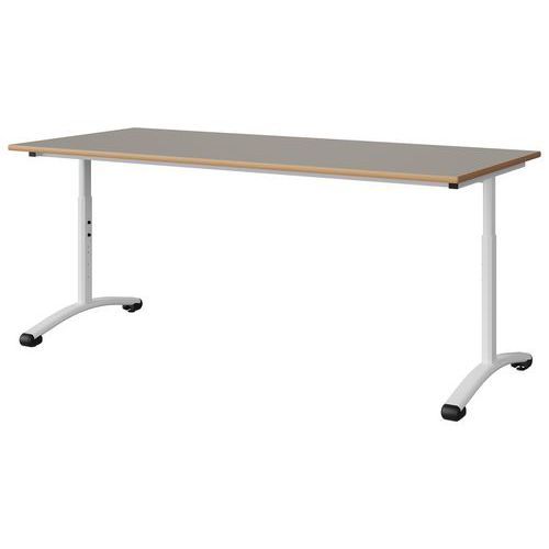 Table Malibu 180x80 cm réglable T3/T6 DL stratifié alaisé Approche écoresponsable : oui Chants coloris : Gris Chants matériau : Alaisé Dégagement latéral : oui Emballage recyclé : 80 % Environnement : Intérieur Finition : Stratifié Forme : Rectangle Fréquence d'utilisation : Régulière Garantie client : 15 ans Hauteur maxi : 76 cm Hauteur réglable mini : 59 cm Licence PEFC : 10311712 Livré monté : oui Longueur : 180 cm Piétement coloris : Blanc Piétement matériau : Acier Plateau coloris : Gris Plateau épaisseur : 21 mm Plateau matériau : Aggloméré Poids : 37.9 kg Produit recyclé : 80 % Profondeur : 80 cm Taille mobilier : T3T6 Type de piétement : 2 pieds Usage : Collectivité Table Malibu réglable à dégagement latéral avec plateau aggloméré stratifié, épaisseur 21 mm, chant alaisé. Contrebalancement stratifié sous plateau blanc. Piètement et structure sous plateau tube acier. Réglage par vis de la T3 à T6. Soudure avec apport de matière. Embouts avec verins de réglage en polyéthylène noir non tachant, non marquant. Poudre époxy. Fabriqué en Nouvelle Aquitaine. Table Malibu 180x80 cm réglable T3/T6, Longueur: 180 cm, Profondeur: 80 cm, Plateau matériau: Aggloméré, Piétement coloris: Blanc, Plateau coloris: Gris, Type de piétement: 2 pieds, Finition: Stratifié, Chants coloris: Gris, Dégagement latéral: oui, Livré monté: oui, Chants matériau: Alaisé, Taille mobilier: T3T6, Fréquence d'utilisation: Régulière, Emballage recyclé: 80 %, Produit recyclé: 80 %, Piétement matériau: Acier, Approche écoresponsable: oui, Poids: 37.9 kg, Usage: Collectivité, Plateau épaisseur: 21 mm, Hauteur maxi: 76 cm, Hauteur réglable mini: 59 cm, Forme: Rectangle, Licence PEFC: 10311712