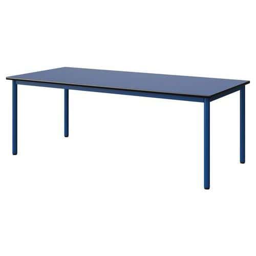 Table Malibu 180 x 80 cm stratifié antibruit chant surmoulé Approche écoresponsable : oui Chants coloris : Noir Chants matériau : Surmoulé Emballage recyclé : 80 % Environnement : Intérieur Finition : Stratifié antibruit Forme : Rectangle Fréquence d'utilisation : Régulière Garantie client : 15 ans Hauteur : 64 cm Licence PEFC : 10311712 Livré monté : non Longueur : 180 cm Piétement coloris : Bleu Piétement matériau : Acier Plateau coloris : Bleu Plateau épaisseur : 21 mm Plateau matériau : Aggloméré Poids : 32.9 kg Produit recyclé : 80 % Profondeur : 80 cm Taille mobilier : T4 Type de piétement : 4 pieds Usage : Collectivité Table Malibu plateau aggloméré stratifié, épaisseur 21 mm, antibruit, renforcé par du liège (3 mm) permettant la réduction du bruit de 9db. Chant surmoulé. Contrebalancement stratifié sous plateau blanc. Piètement et structure sous plateau tube acier. Soudure avec apport de matière. Embouts avec verins de réglage en polyéthylène noir non tachant, non marquant. Poudre époxy. Fabriqué en Nouvelle Aquitaine. Table Malibu 180 x 80 cm, Longueur: 180 cm, Profondeur: 80 cm, Plateau matériau: Aggloméré, Piétement coloris: Bleu, Plateau coloris: Bleu, Hauteur: 64 cm, Type de piétement: 4 pieds, Finition: Stratifié antibruit, Chants coloris: Noir, Livré monté: non, Chants matériau: Surmoulé, Taille mobilier: T4, Fréquence d'utilisation: Régulière, Emballage recyclé: 80 %, Produit recyclé: 80 %, Piétement matériau: Acier, Approche écoresponsable: oui, Poids: 32.9 kg, Usage: Collectivité, Plateau épaisseur: 21 mm, Forme: Rectangle, Licence PEFC: 10311712