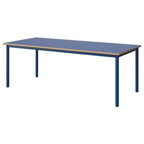 Table Malibu 180 x 80 cm stratifié chant alaisé Approche écoresponsable : oui Chants coloris : Bleu Chants matériau : Alaisé Emballage recyclé : 80 % Environnement : Intérieur Finition : Stratifié Forme : Rectangle Fréquence d'utilisation : Régulière Garantie client : 15 ans Hauteur : 64 cm Licence PEFC : 10311712 Livré monté : non Longueur : 180 cm Piétement coloris : Bleu Piétement matériau : Acier Plateau coloris : Bleu Plateau épaisseur : 21 mm Plateau matériau : Aggloméré Poids : 33.4 kg Produit recyclé : 80 % Profondeur : 80 cm Taille mobilier : T4 Type de piétement : 4 pieds Usage : Collectivité Table Malibu avec plateau aggloméré stratifié, épaisseur 21 mm, chant alaisé. Contrebalancement stratifié sous plateau blanc. Piètement et structure sous plateau tube acier. Soudure avec apport de matière. Embouts avec verins de réglage en polyéthylène noir non tachant, non marquant. Poudre époxy. Fabriqué en Nouvelle Aquitaine. Table Malibu 180 x 80 cm, Longueur: 180 cm, Profondeur: 80 cm, Plateau matériau: Aggloméré, Piétement coloris: Bleu, Plateau coloris: Bleu, Hauteur: 64 cm, Type de piétement: 4 pieds, Finition: Stratifié, Chants coloris: Bleu, Livré monté: non, Chants matériau: Alaisé, Taille mobilier: T4, Fréquence d'utilisation: Régulière, Emballage recyclé: 80 %, Produit recyclé: 80 %, Piétement matériau: Acier, Approche écoresponsable: oui, Poids: 33.4 kg, Usage: Collectivité, Plateau épaisseur: 21 mm, Forme: Rectangle, Licence PEFC: 10311712