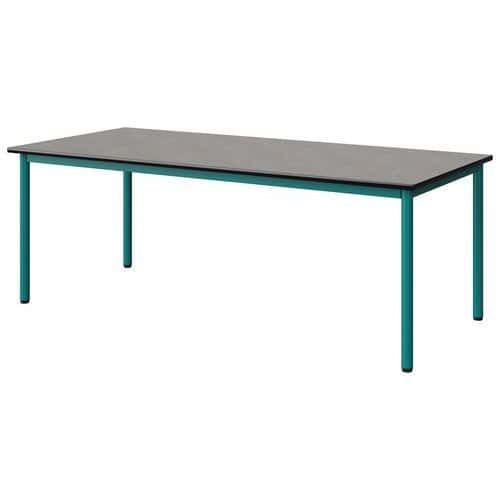Table Malibu 180 x 80 cm stratifié chant surmoulé Approche écoresponsable : oui Chants coloris : Noir Chants matériau : Surmoulé Emballage recyclé : 80 % Environnement : Intérieur Finition : Stratifié Forme : Rectangle Fréquence d'utilisation : Régulière Garantie client : 15 ans Hauteur : 64 cm Licence PEFC : 10311712 Livré monté : non Longueur : 180 cm Piétement coloris : Bleu Piétement matériau : Acier Plateau coloris : Gris clair Plateau épaisseur : 21 mm Plateau matériau : Aggloméré Poids : 33.8 kg Produit recyclé : 80 % Profondeur : 80 cm Taille mobilier : T4 Type de piétement : 4 pieds Usage : Collectivité Table Malibu avec plateau aggloméré stratifié, épaisseur 21 mm, chant surmoulé. Contrebalancement stratifié sous plateau blanc. Piètement et structure sous plateau tube acier. Soudure avec apport de matière. Embouts avec verins de réglage en polyéthylène noir non tachant, non marquant. Poudre époxy. Fabriqué en Nouvelle Aquitaine. Table Malibu 180 x 80 cm, Longueur: 180 cm, Profondeur: 80 cm, Plateau matériau: Aggloméré, Piétement coloris: Bleu, Plateau coloris: Gris clair, Hauteur: 64 cm, Type de piétement: 4 pieds, Finition: Stratifié, Chants coloris: Noir, Livré monté: non, Chants matériau: Surmoulé, Taille mobilier: T4, Fréquence d'utilisation: Régulière, Emballage recyclé: 80 %, Produit recyclé: 80 %, Piétement matériau: Acier, Approche écoresponsable: oui, Poids: 33.8 kg, Usage: Collectivité, Plateau épaisseur: 21 mm, Forme: Rectangle, Licence PEFC: 10311712