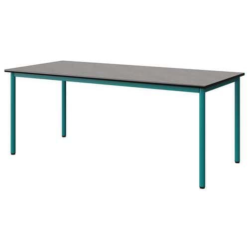 Table Malibu 180 x 80 cm stratifié antibruit chant surmoulé Approche écoresponsable : oui Chants coloris : Noir Chants matériau : Surmoulé Emballage recyclé : 80 % Environnement : Intérieur Finition : Stratifié antibruit Forme : Rectangle Fréquence d'utilisation : Régulière Garantie client : 15 ans Hauteur : 71 cm Licence PEFC : 10311712 Livré monté : non Longueur : 180 cm Piétement coloris : Bleu Piétement matériau : Acier Plateau coloris : Gris clair Plateau épaisseur : 21 mm Plateau matériau : Aggloméré Poids : 33.4 kg Produit recyclé : 80 % Profondeur : 80 cm Taille mobilier : T5 Type de piétement : 4 pieds Usage : Collectivité Table Malibu plateau aggloméré stratifié, épaisseur 21 mm, antibruit, renforcé par du liège (3 mm) permettant la réduction du bruit de 9db. Chant surmoulé. Contrebalancement stratifié sous plateau blanc. Piètement et structure sous plateau tube acier. Soudure avec apport de matière. Embouts avec verins de réglage en polyéthylène noir non tachant, non marquant. Poudre époxy. Fabriqué en Nouvelle Aquitaine. Table Malibu 180 x 80 cm, Longueur: 180 cm, Profondeur: 80 cm, Plateau matériau: Aggloméré, Piétement coloris: Bleu, Plateau coloris: Gris clair, Hauteur: 71 cm, Type de piétement: 4 pieds, Finition: Stratifié antibruit, Chants coloris: Noir, Livré monté: non, Chants matériau: Surmoulé, Taille mobilier: T5, Fréquence d'utilisation: Régulière, Emballage recyclé: 80 %, Produit recyclé: 80 %, Piétement matériau: Acier, Approche écoresponsable: oui, Poids: 33.4 kg, Usage: Collectivité, Plateau épaisseur: 21 mm, Forme: Rectangle, Licence PEFC: 10311712