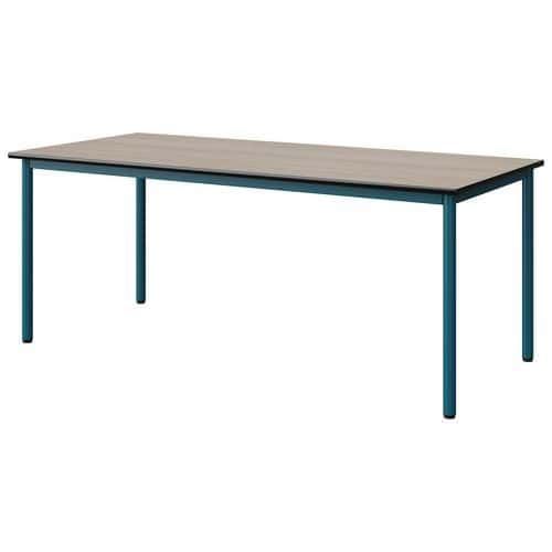 Table Malibu 180 x 80 cm stratifié chant surmoulé Approche écoresponsable : oui Chants coloris : Noir Chants matériau : Surmoulé Emballage recyclé : 80 % Environnement : Intérieur Finition : Stratifié Forme : Rectangle Fréquence d'utilisation : Régulière Garantie client : 15 ans Hauteur : 71 cm Licence PEFC : 10311712 Livré monté : non Longueur : 180 cm Piétement coloris : Bleu Piétement matériau : Acier Plateau coloris : Acacia Plateau épaisseur : 21 mm Plateau matériau : Aggloméré Poids : 34.3 kg Produit recyclé : 80 % Profondeur : 80 cm Taille mobilier : T5 Type de piétement : 4 pieds Usage : Collectivité Table Malibu avec plateau aggloméré stratifié, épaisseur 21 mm, chant surmoulé. Contrebalancement stratifié sous plateau blanc. Piètement et structure sous plateau tube acier. Soudure avec apport de matière. Embouts avec verins de réglage en polyéthylène noir non tachant, non marquant. Poudre époxy. Fabriqué en Nouvelle Aquitaine. Table Malibu 180 x 80 cm, Longueur: 180 cm, Profondeur: 80 cm, Plateau matériau: Aggloméré, Piétement coloris: Bleu, Plateau coloris: Acacia, Hauteur: 71 cm, Type de piétement: 4 pieds, Finition: Stratifié, Chants coloris: Noir, Livré monté: non, Chants matériau: Surmoulé, Taille mobilier: T5, Fréquence d'utilisation: Régulière, Emballage recyclé: 80 %, Produit recyclé: 80 %, Piétement matériau: Acier, Approche écoresponsable: oui, Poids: 34.3 kg, Usage: Collectivité, Plateau épaisseur: 21 mm, Forme: Rectangle, Licence PEFC: 10311712