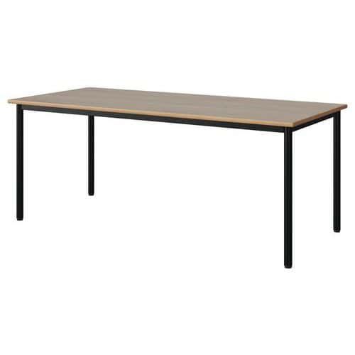 Table Malibu 180 x 80 cm stratifié chant alaisé Approche écoresponsable : oui Chants coloris : Chêne Chants matériau : Alaisé Emballage recyclé : 80 % Environnement : Intérieur Finition : Stratifié Forme : Rectangle Fréquence d'utilisation : Régulière Garantie client : 15 ans Hauteur : 71 cm Licence PEFC : 10311712 Livré monté : non Longueur : 180 cm Piétement coloris : Noir Piétement matériau : Acier Plateau coloris : Chêne Plateau épaisseur : 21 mm Plateau matériau : Aggloméré Poids : 34 kg Produit recyclé : 80 % Profondeur : 80 cm Taille mobilier : T5 Type de piétement : 4 pieds Usage : Collectivité Table Malibu avec plateau aggloméré stratifié, épaisseur 21 mm, chant alaisé. Contrebalancement stratifié sous plateau blanc. Piètement et structure sous plateau tube acier. Soudure avec apport de matière. Embouts avec verins de réglage en polyéthylène noir non tachant, non marquant. Poudre époxy. Fabriqué en Nouvelle Aquitaine. Table Malibu 180 x 80 cm, Longueur: 180 cm, Profondeur: 80 cm, Plateau matériau: Aggloméré, Piétement coloris: Noir, Plateau coloris: Chêne, Hauteur: 71 cm, Type de piétement: 4 pieds, Finition: Stratifié, Chants coloris: Chêne, Livré monté: non, Chants matériau: Alaisé, Taille mobilier: T5, Fréquence d'utilisation: Régulière, Emballage recyclé: 80 %, Produit recyclé: 80 %, Piétement matériau: Acier, Approche écoresponsable: oui, Poids: 34 kg, Usage: Collectivité, Plateau épaisseur: 21 mm, Forme: Rectangle, Licence PEFC: 10311712