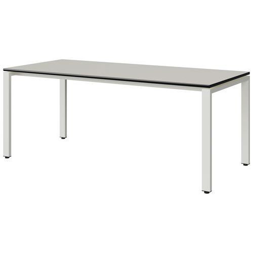Table Malibu 180x80 cm 4P soudés stratifié antibruit chant surmoulé Approche écoresponsable : oui Chants coloris : Noir Chants matériau : Surmoulé Emballage recyclé : 80 % Environnement : Intérieur Finition : Stratifié antibruit Forme : Rectangle Fréquence d'utilisation : Régulière Garantie client : 15 ans Hauteur : 71 cm Licence PEFC : 10311712 Livré monté : oui Longueur : 180 cm Piétement coloris : Blanc Piétement matériau : Acier Plateau coloris : Blanc Plateau épaisseur : 21 mm Plateau matériau : Aggloméré Poids : 30.3 kg Produit recyclé : 80 % Profondeur : 80 cm Taille mobilier : T5 Type de piétement : 4 pieds Usage : Collectivité Table Malibu plateau aggloméré stratifié, épaisseur 21 mm, antibruit, renforcé par du liège (3 mm) permettant la réduction du bruit de 9db. Chant surmoulé. Contrebalancement stratifié sous plateau blanc. Piètement et renforts sous plateau tube acier. Structure monobloc soudée avec apport de matière. Embouts avec verins de réglage en polyéthylène noir non tachant, non marquant. Poudre époxy. Fabriqué en Nouvelle Aquitaine. Table Malibu 180x80 cm 4P soudés, Longueur: 180 cm, Profondeur: 80 cm, Plateau matériau: Aggloméré, Piétement coloris: Blanc, Plateau coloris: Blanc, Hauteur: 71 cm, Type de piétement: 4 pieds, Finition: Stratifié antibruit, Chants coloris: Noir, Livré monté: oui, Chants matériau: Surmoulé, Taille mobilier: T5, Fréquence d'utilisation: Régulière, Emballage recyclé: 80 %, Produit recyclé: 80 %, Piétement matériau: Acier, Approche écoresponsable: oui, Poids: 30.3 kg, Usage: Collectivité, Plateau épaisseur: 21 mm, Forme: Rectangle, Licence PEFC: 10311712