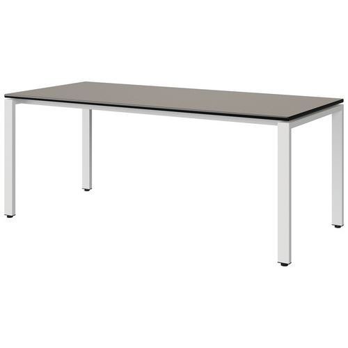 Table Malibu 180x80 cm 4P soudés stratifié antibruit chant surmoulé Approche écoresponsable : oui Chants coloris : Noir Chants matériau : Surmoulé Emballage recyclé : 80 % Environnement : Intérieur Finition : Stratifié antibruit Forme : Rectangle Fréquence d'utilisation : Régulière Garantie client : 15 ans Hauteur : 71 cm Licence PEFC : 10311712 Livré monté : oui Longueur : 180 cm Piétement coloris : Blanc Piétement matériau : Acier Plateau coloris : Gris Plateau épaisseur : 21 mm Plateau matériau : Aggloméré Poids : 30.3 kg Produit recyclé : 80 % Profondeur : 80 cm Taille mobilier : T5 Type de piétement : 4 pieds Usage : Collectivité Table Malibu plateau aggloméré stratifié, épaisseur 21 mm, antibruit, renforcé par du liège (3 mm) permettant la réduction du bruit de 9db. Chant surmoulé. Contrebalancement stratifié sous plateau blanc. Piètement et renforts sous plateau tube acier. Structure monobloc soudée avec apport de matière. Embouts avec verins de réglage en polyéthylène noir non tachant, non marquant. Poudre époxy. Fabriqué en Nouvelle Aquitaine. Table Malibu 180x80 cm 4P soudés, Longueur: 180 cm, Profondeur: 80 cm, Plateau matériau: Aggloméré, Piétement coloris: Blanc, Plateau coloris: Gris, Hauteur: 71 cm, Type de piétement: 4 pieds, Finition: Stratifié antibruit, Chants coloris: Noir, Livré monté: oui, Chants matériau: Surmoulé, Taille mobilier: T5, Fréquence d'utilisation: Régulière, Emballage recyclé: 80 %, Produit recyclé: 80 %, Piétement matériau: Acier, Approche écoresponsable: oui, Poids: 30.3 kg, Usage: Collectivité, Plateau épaisseur: 21 mm, Forme: Rectangle, Licence PEFC: 10311712