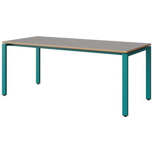 Table Malibu 180 x 80 cm pieds soudés stratifié chant alaisé Approche écoresponsable : oui Chants coloris : Gris clair Chants matériau : Alaisé Emballage recyclé : 80 % Environnement : Intérieur Finition : Stratifié Forme : Rectangle Fréquence d'utilisation : Régulière Garantie client : 15 ans Hauteur : 71 cm Licence PEFC : 10311712 Livré monté : oui Longueur : 180 cm Piétement coloris : Bleu Piétement matériau : Acier Plateau coloris : Gris clair Plateau épaisseur : 21 mm Plateau matériau : Aggloméré Poids : 30.9 kg Produit recyclé : 80 % Profondeur : 80 cm Taille mobilier : T5 Type de piétement : 4 pieds Usage : Collectivité Table Malibu avec plateau aggloméré stratifié, épaisseur 21 mm, chant alaisé. Contrebalancement stratifié sous plateau blanc. Piètement et renforts sous plateau tube acier. Structure monobloc soudée avec apport de matière. Embouts avec verins de réglage en polyéthylène noir non tachant, non marquant. Poudre époxy. Fabriqué en Nouvelle Aquitaine. Table Malibu 180 x 80 cm pieds soudés, Longueur: 180 cm, Profondeur: 80 cm, Plateau matériau: Aggloméré, Piétement coloris: Bleu, Plateau coloris: Gris clair, Hauteur: 71 cm, Type de piétement: 4 pieds, Finition: Stratifié, Chants coloris: Gris clair, Livré monté: oui, Chants matériau: Alaisé, Taille mobilier: T5, Fréquence d'utilisation: Régulière, Emballage recyclé: 80 %, Produit recyclé: 80 %, Piétement matériau: Acier, Approche écoresponsable: oui, Poids: 30.9 kg, Usage: Collectivité, Plateau épaisseur: 21 mm, Forme: Rectangle, Licence PEFC: 10311712