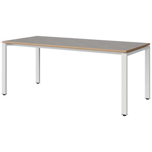 Table Malibu 180 x 80 cm pieds soudés stratifié chant alaisé Approche écoresponsable : oui Chants coloris : Gris clair Chants matériau : Alaisé Emballage recyclé : 80 % Environnement : Intérieur Finition : Stratifié Forme : Rectangle Fréquence d'utilisation : Régulière Garantie client : 15 ans Hauteur : 71 cm Licence PEFC : 10311712 Livré monté : oui Longueur : 180 cm Piétement coloris : Blanc Piétement matériau : Acier Plateau coloris : Gris clair Plateau épaisseur : 21 mm Plateau matériau : Aggloméré Poids : 30.9 kg Produit recyclé : 80 % Profondeur : 80 cm Taille mobilier : T5 Type de piétement : 4 pieds Usage : Collectivité Table Malibu avec plateau aggloméré stratifié, épaisseur 21 mm, chant alaisé. Contrebalancement stratifié sous plateau blanc. Piètement et renforts sous plateau tube acier. Structure monobloc soudée avec apport de matière. Embouts avec verins de réglage en polyéthylène noir non tachant, non marquant. Poudre époxy. Fabriqué en Nouvelle Aquitaine. Table Malibu 180 x 80 cm pieds soudés, Longueur: 180 cm, Profondeur: 80 cm, Plateau matériau: Aggloméré, Piétement coloris: Blanc, Plateau coloris: Gris clair, Hauteur: 71 cm, Type de piétement: 4 pieds, Finition: Stratifié, Chants coloris: Gris clair, Livré monté: oui, Chants matériau: Alaisé, Taille mobilier: T5, Fréquence d'utilisation: Régulière, Emballage recyclé: 80 %, Produit recyclé: 80 %, Piétement matériau: Acier, Approche écoresponsable: oui, Poids: 30.9 kg, Usage: Collectivité, Plateau épaisseur: 21 mm, Forme: Rectangle, Licence PEFC: 10311712