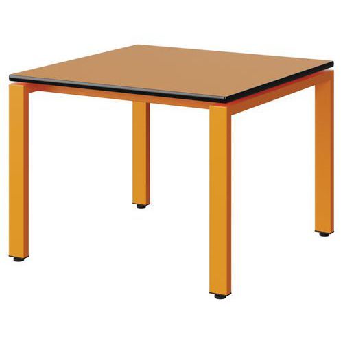 Table Malibu 80 x 80 cm pieds soudés stratifié chant surmoulé Approche écoresponsable : oui Chants coloris : Noir Chants matériau : Surmoulé Emballage recyclé : 80 % Environnement : Intérieur Finition : Stratifié Forme : Carré Fréquence d'utilisation : Régulière Garantie client : 15 ans Hauteur : 59 cm Licence PEFC : 10311712 Livré monté : oui Longueur : 80 cm Piétement coloris : Orange Piétement matériau : Acier Plateau coloris : Orange Plateau épaisseur : 21 mm Plateau matériau : Aggloméré Poids : 15.6 kg Produit recyclé : 80 % Profondeur : 80 cm Taille mobilier : T3 Type de piétement : 4 pieds Usage : Collectivité Table Malibu avec plateau aggloméré stratifié, épaisseur 21 mm, chant surmoulé. Contrebalancement stratifié sous plateau blanc. Piètement et renforts sous plateau tube acier. Structure monobloc soudée avec apport de matière. Embouts avec verins de réglage en polyéthylène noir non tachant, non marquant. Poudre époxy. Fabriqué en Nouvelle Aquitaine. Table Malibu 80 x 80 cm pieds soudés stratifié chant surmoulé, Longueur: 80 cm, Profondeur: 80 cm, Plateau matériau: Aggloméré, Piétement coloris: Orange, Plateau coloris: Orange, Piétement matériau: Acier, Chants matériau: Surmoulé, Hauteur: 59 cm, Type de piétement: 4 pieds, Finition: Stratifié, Chants coloris: Noir, Livré monté: oui, Taille mobilier: T3, Fréquence d'utilisation: Régulière, Emballage recyclé: 80 %, Produit recyclé: 80 %, Approche écoresponsable: oui, Poids: 15.6 kg, Usage: Collectivité, Plateau épaisseur: 21 mm, Forme: Carré, Licence PEFC: 10311712