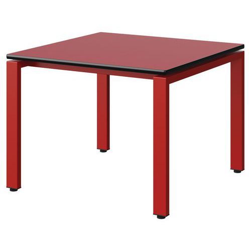 Table Malibu 80 x 80 cm pieds soudés stratifié chant surmoulé Approche écoresponsable : oui Chants coloris : Noir Chants matériau : Surmoulé Emballage recyclé : 80 % Environnement : Intérieur Finition : Stratifié Forme : Carré Fréquence d'utilisation : Régulière Garantie client : 15 ans Hauteur : 59 cm Licence PEFC : 10311712 Livré monté : oui Longueur : 80 cm Piétement coloris : Rouge Piétement matériau : Acier Plateau coloris : Rouge Plateau épaisseur : 21 mm Plateau matériau : Aggloméré Poids : 15.6 kg Produit recyclé : 80 % Profondeur : 80 cm Taille mobilier : T3 Type de piétement : 4 pieds Usage : Collectivité Table Malibu avec plateau aggloméré stratifié, épaisseur 21 mm, chant surmoulé. Contrebalancement stratifié sous plateau blanc. Piètement et renforts sous plateau tube acier. Structure monobloc soudée avec apport de matière. Embouts avec verins de réglage en polyéthylène noir non tachant, non marquant. Poudre époxy. Fabriqué en Nouvelle Aquitaine. Table Malibu 80 x 80 cm pieds soudés stratifié chant surmoulé, Longueur: 80 cm, Profondeur: 80 cm, Plateau matériau: Aggloméré, Piétement coloris: Rouge, Plateau coloris: Rouge, Hauteur: 59 cm, Type de piétement: 4 pieds, Finition: Stratifié, Chants coloris: Noir, Livré monté: oui, Chants matériau: Surmoulé, Taille mobilier: T3, Fréquence d'utilisation: Régulière, Emballage recyclé: 80 %, Produit recyclé: 80 %, Piétement matériau: Acier, Approche écoresponsable: oui, Poids: 15.6 kg, Usage: Collectivité, Plateau épaisseur: 21 mm, Forme: Carré, Licence PEFC: 10311712