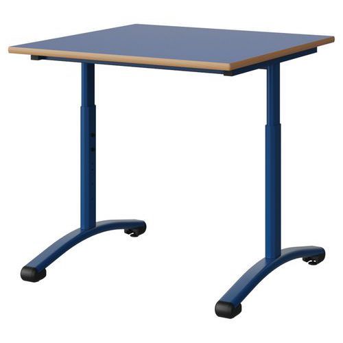 Table Malibu 80x80 cm réglable T3/T6 DL stratifié alaisé Manutan Expert Approche écoresponsable : oui Chants coloris : Bleu Chants matériau : Alaisé Dégagement latéral : oui Emballage recyclé : 80 % Environnement : Intérieur Finitions : Stratifié Forme : Carré Fréquence d'utilisation : Régulière Garantie client : 15 ans Hauteur maxi : 76 cm Hauteur réglable mini : 59 cm Licence PEFC : 10311712 Livré monté : oui Longueurs : 80 cm Piétement coloris : Bleu Piétement matériaux : Acier Plateau coloris : Bleu Plateau épaisseur : 21 mm Plateau matériau : Aggloméré Poids du produit : 21.5 kg Produit recyclé : 80 % Profondeur : 80 cm Taille mobilier : T3T6 Type de piétement : 2 pieds Usage : Collectivité Table Malibu réglable à dégagement latéral avec plateau aggloméré stratifié, épaisseur 21 mm, chant alaisé. Contrebalancement stratifié sous plateau blanc. Piètement et structure sous plateau tube acier, soudure avec apport de matière. Réglage par vis de la T3 à T6. Embouts avec verins de réglage en polyéthylène noir non tachant, non marquant. Table Malibu 80x80 cm réglable T3/T6 DL stratifié alaisé, Longueurs: 80 cm, Profondeur: 80 cm, Plateau matériau: Aggloméré, Piétement coloris: Bleu, Plateau coloris: Bleu, Type de piétement: 2 pieds, Finitions: Stratifié, Chants coloris: Bleu, Dégagement latéral: oui, Livré monté: oui, Chants matériau: Alaisé, Taille mobilier: T3T6, Fréquence d'utilisation: Régulière, Emballage recyclé: 80 %, Produit recyclé: 80 %, Piétement matériaux: Acier, Approche écoresponsable: oui, Poids du produit: 21.5 kg, Usage: Collectivité, Plateau épaisseur: 21 mm, Hauteur maxi: 76 cm, Hauteur réglable mini: 59 cm, Forme: Carré, Licence PEFC: 10311712