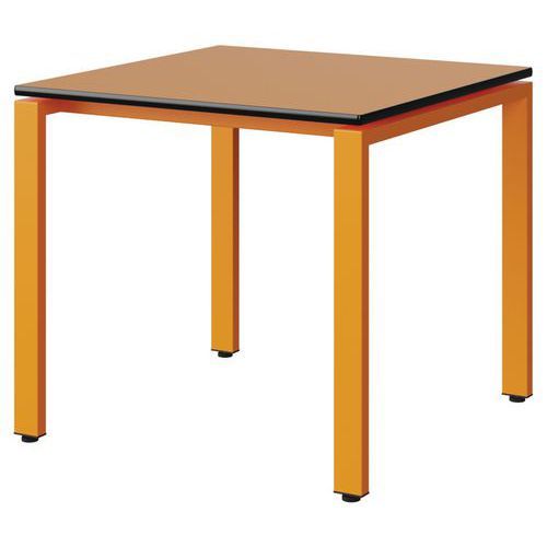 Table Malibu 80 x 80 cm pieds soudés stratifié chant surmoulé Approche écoresponsable : oui Chants coloris : Noir Chants matériau : Surmoulé Emballage recyclé : 80 % Environnement : Intérieur Finition : Stratifié Forme : Carré Fréquence d'utilisation : Régulière Garantie client : 15 ans Hauteur : 71 cm Licence PEFC : 10311712 Livré monté : oui Longueur : 80 cm Piétement coloris : Orange Piétement matériau : Acier Plateau coloris : Orange Plateau épaisseur : 21 mm Plateau matériau : Aggloméré Poids : 16.1 kg Produit recyclé : 80 % Profondeur : 80 cm Taille mobilier : T5 Type de piétement : 4 pieds Usage : Collectivité Table Malibu avec plateau aggloméré stratifié, épaisseur 21 mm, chant surmoulé. Contrebalancement stratifié sous plateau blanc. Piètement et renforts sous plateau tube acier. Structure monobloc soudée avec apport de matière. Embouts avec verins de réglage en polyéthylène noir non tachant, non marquant. Poudre époxy. Fabriqué en Nouvelle Aquitaine. Table Malibu 80 x 80 cm pieds soudés stratifié chant surmoulé, Longueur: 80 cm, Profondeur: 80 cm, Plateau matériau: Aggloméré, Piétement coloris: Orange, Plateau coloris: Orange, Piétement matériau: Acier, Chants matériau: Surmoulé, Hauteur: 71 cm, Type de piétement: 4 pieds, Finition: Stratifié, Chants coloris: Noir, Livré monté: oui, Taille mobilier: T5, Fréquence d'utilisation: Régulière, Emballage recyclé: 80 %, Produit recyclé: 80 %, Approche écoresponsable: oui, Poids: 16.1 kg, Usage: Collectivité, Plateau épaisseur: 21 mm, Forme: Carré, Licence PEFC: 10311712