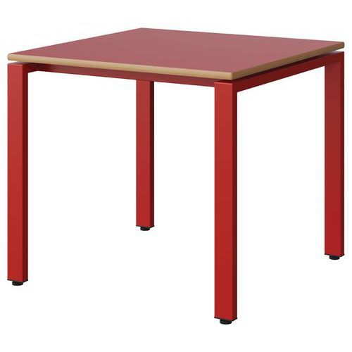 Table Malibu 80 x 80 cm pieds soudés stratifié chant alaisé Approche écoresponsable : oui Chants coloris : Rouge Chants matériau : Alaisé Emballage recyclé : 80 % Environnement : Intérieur Finition : Stratifié Forme : Carré Fréquence d'utilisation : Régulière Garantie client : 15 ans Hauteur : 71 cm Licence PEFC : 10311712 Livré monté : oui Longueur : 80 cm Piétement coloris : Rouge Piétement matériau : Acier Plateau coloris : Rouge Plateau épaisseur : 21 mm Plateau matériau : Aggloméré Poids : 16 kg Produit recyclé : 80 % Profondeur : 80 cm Taille mobilier : T5 Type de piétement : 4 pieds Usage : Collectivité Table Malibu avec plateau aggloméré stratifié, épaisseur 21 mm, chant alaisé. Contrebalancement stratifié sous plateau blanc. Piètement et renforts sous plateau tube acier. Structure monobloc soudée avec apport de matière. Embouts avec verins de réglage en polyéthylène noir non tachant, non marquant. Poudre époxy. Fabriqué en Nouvelle Aquitaine. Table Malibu 80 x 80 cm pieds soudés, Longueur: 80 cm, Profondeur: 80 cm, Plateau matériau: Aggloméré, Piétement coloris: Rouge, Plateau coloris: Rouge, Hauteur: 71 cm, Type de piétement: 4 pieds, Finition: Stratifié, Chants coloris: Rouge, Livré monté: oui, Chants matériau: Alaisé, Taille mobilier: T5, Fréquence d'utilisation: Régulière, Emballage recyclé: 80 %, Produit recyclé: 80 %, Piétement matériau: Acier, Approche écoresponsable: oui, Poids: 16 kg, Usage: Collectivité, Plateau épaisseur: 21 mm, Forme: Carré, Licence PEFC: 10311712