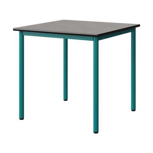 Table Malibu 80 x 80 cm stratifié antibruit chant surmoulé Approche écoresponsable : oui Chants coloris : Noir Chants matériau : Surmoulé Emballage recyclé : 80 % Environnement : Intérieur Finition : Stratifié antibruit Forme : Carré Fréquence d'utilisation : Régulière Garantie client : 15 ans Hauteur : 76 cm Licence PEFC : 10311712 Livré monté : non Longueur : 80 cm Piétement coloris : Bleu Piétement matériau : Acier Plateau coloris : Gris clair Plateau épaisseur : 21 mm Plateau matériau : Aggloméré Poids : 19.2 kg Produit recyclé : 80 % Profondeur : 80 cm Taille mobilier : T6 Type de piétement : 4 pieds Usage : Collectivité Table Malibu plateau aggloméré stratifié, épaisseur 21 mm, antibruit, renforcé par du liège (3 mm) permettant la réduction du bruit de 9db. Chant surmoulé. Contrebalancement stratifié sous plateau blanc. Piètement et structure sous plateau tube acier. Soudure avec apport de matière. Embouts avec verins de réglage en polyéthylène noir non tachant, non marquant. Poudre époxy. Fabriqué en Nouvelle Aquitaine. Table Malibu 80 x 80 cm, Longueur: 80 cm, Profondeur: 80 cm, Plateau matériau: Aggloméré, Piétement coloris: Bleu, Plateau coloris: Gris clair, Hauteur: 76 cm, Type de piétement: 4 pieds, Finition: Stratifié antibruit, Chants coloris: Noir, Livré monté: non, Chants matériau: Surmoulé, Taille mobilier: T6, Fréquence d'utilisation: Régulière, Emballage recyclé: 80 %, Produit recyclé: 80 %, Piétement matériau: Acier, Approche écoresponsable: oui, Poids: 19.2 kg, Usage: Collectivité, Plateau épaisseur: 21 mm, Forme: Carré, Licence PEFC: 10311712
