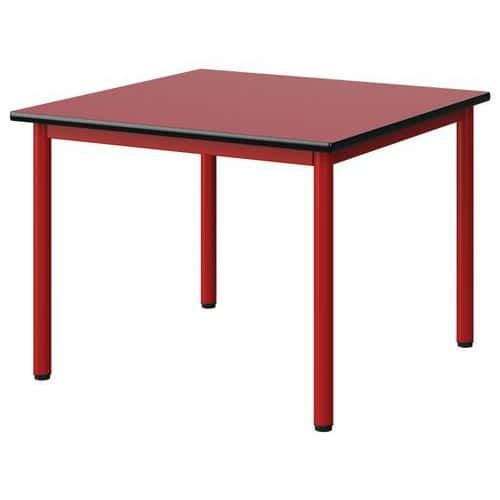 Table Malibu 80 x 80 cm stratifié chant surmoulé Approche écoresponsable : oui Chants coloris : Noir Chants matériau : Surmoulé Emballage recyclé : 80 % Environnement : Intérieur Finition : Stratifié Forme : Carré Fréquence d'utilisation : Régulière Garantie client : 15 ans Hauteur : 59 cm Licence PEFC : 10311712 Livré monté : non Longueur : 80 cm Piétement coloris : Rouge Piétement matériau : Acier Plateau coloris : Rouge Plateau épaisseur : 21 mm Plateau matériau : Aggloméré Poids : 18.4 kg Produit recyclé : 80 % Profondeur : 80 cm Taille mobilier : T3 Type de piétement : 4 pieds Usage : Collectivité Table Malibu avec plateau aggloméré stratifié, épaisseur 21 mm, chant surmoulé. Contrebalancement stratifié sous plateau blanc. Piètement et structure sous plateau tube acier. Soudure avec apport de matière. Embouts avec verins de réglage en polyéthylène noir non tachant, non marquant. Poudre époxy. Fabriqué en Nouvelle Aquitaine. Table Malibu 80 x 80 cm, Longueur: 80 cm, Profondeur: 80 cm, Plateau matériau: Aggloméré, Piétement coloris: Rouge, Plateau coloris: Rouge, Hauteur: 59 cm, Type de piétement: 4 pieds, Finition: Stratifié, Chants coloris: Noir, Livré monté: non, Chants matériau: Surmoulé, Taille mobilier: T3, Fréquence d'utilisation: Régulière, Emballage recyclé: 80 %, Produit recyclé: 80 %, Piétement matériau: Acier, Approche écoresponsable: oui, Poids: 18.4 kg, Usage: Collectivité, Plateau épaisseur: 21 mm, Forme: Carré, Licence PEFC: 10311712