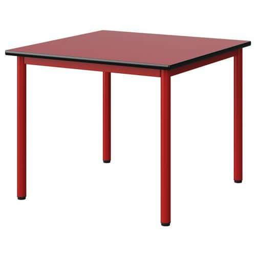 Table Malibu 80 x 80 cm stratifié chant surmoulé Approche écoresponsable : oui Chants coloris : Noir Chants matériau : Surmoulé Emballage recyclé : 80 % Environnement : Intérieur Finition : Stratifié Forme : Carré Fréquence d'utilisation : Régulière Garantie client : 15 ans Hauteur : 64 cm Licence PEFC : 10311712 Livré monté : non Longueur : 80 cm Piétement coloris : Rouge Piétement matériau : Acier Plateau coloris : Rouge Plateau épaisseur : 21 mm Plateau matériau : Aggloméré Poids : 18.7 kg Produit recyclé : 80 % Profondeur : 80 cm Taille mobilier : T4 Type de piétement : 4 pieds Usage : Collectivité Table Malibu avec plateau aggloméré stratifié, épaisseur 21 mm, chant surmoulé. Contrebalancement stratifié sous plateau blanc. Piètement et structure sous plateau tube acier. Soudure avec apport de matière. Embouts avec verins de réglage en polyéthylène noir non tachant, non marquant. Poudre époxy. Fabriqué en Nouvelle Aquitaine. Table Malibu 80 x 80 cm, Longueur: 80 cm, Profondeur: 80 cm, Plateau matériau: Aggloméré, Piétement coloris: Rouge, Plateau coloris: Rouge, Hauteur: 64 cm, Type de piétement: 4 pieds, Finition: Stratifié, Chants coloris: Noir, Livré monté: non, Chants matériau: Surmoulé, Taille mobilier: T4, Fréquence d'utilisation: Régulière, Emballage recyclé: 80 %, Produit recyclé: 80 %, Piétement matériau: Acier, Approche écoresponsable: oui, Poids: 18.7 kg, Usage: Collectivité, Plateau épaisseur: 21 mm, Forme: Carré, Licence PEFC: 10311712
