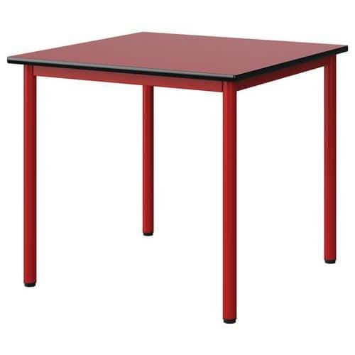 Table Malibu 80 x 80 cm stratifié chant surmoulé Approche écoresponsable : oui Chants coloris : Noir Chants matériau : Surmoulé Emballage recyclé : 80 % Environnement : Intérieur Finition : Stratifié Forme : Carré Fréquence d'utilisation : Régulière Garantie client : 15 ans Hauteur : 71 cm Licence PEFC : 10311712 Livré monté : non Longueur : 80 cm Piétement coloris : Rouge Piétement matériau : Acier Plateau coloris : Rouge Plateau épaisseur : 21 mm Plateau matériau : Aggloméré Poids : 19.2 kg Produit recyclé : 80 % Profondeur : 80 cm Taille mobilier : T5 Type de piétement : 4 pieds Usage : Collectivité Table Malibu avec plateau aggloméré stratifié, épaisseur 21 mm, chant surmoulé. Contrebalancement stratifié sous plateau blanc. Piètement et structure sous plateau tube acier. Soudure avec apport de matière. Embouts avec verins de réglage en polyéthylène noir non tachant, non marquant. Poudre époxy. Fabriqué en Nouvelle Aquitaine. Table Malibu 80 x 80 cm, Longueur: 80 cm, Profondeur: 80 cm, Plateau matériau: Aggloméré, Piétement coloris: Rouge, Plateau coloris: Rouge, Hauteur: 71 cm, Type de piétement: 4 pieds, Finition: Stratifié, Chants coloris: Noir, Livré monté: non, Chants matériau: Surmoulé, Taille mobilier: T5, Fréquence d'utilisation: Régulière, Emballage recyclé: 80 %, Produit recyclé: 80 %, Piétement matériau: Acier, Approche écoresponsable: oui, Poids: 19.2 kg, Usage: Collectivité, Plateau épaisseur: 21 mm, Forme: Carré, Licence PEFC: 10311712