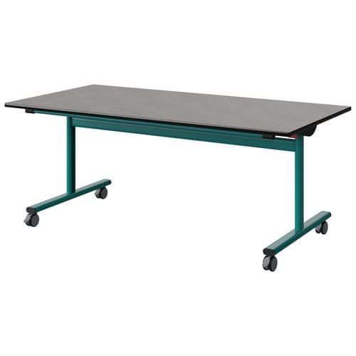 Table Malibu rabattable 160 x 80 cm stratifié chant surmoulé Approche écoresponsable : oui Chants coloris : Noir Chants matériau : Surmoulé Dégagement latéral : oui Emballage recyclé : 80 % Environnement : Intérieur Finition : Stratifié Forme : Rectangle Fréquence d'utilisation : Régulière Garantie client : 15 ans Hauteur : 64 cm Licence PEFC : 10311712 Livré monté : oui Longueur : 160 cm Piétement coloris : Bleu Piétement matériau : Acier Plateau coloris : Gris clair Plateau épaisseur : 21 mm Plateau matériau : Aggloméré Poids : 35.1 kg Produit recyclé : 80 % Profondeur : 80 cm Taille mobilier : T4 Type de piétement : 2 pieds Usage : Collectivité Table Malibu rabattable à dégagement latéral avec plateau aggloméré stratifié, épaisseur 21 mm, chant surmoulé. Contrebalancement stratifié sous plateau blanc. Piètement tube acier. Soudure avec apport de matière. Système basculant avec blocage en plastique. Roulettes pivotantes avec frein. Embouts avec verins de réglage en polyéthylène noir non tachant, non marquant. Poudre époxy. Fabriqué en Nouvelle Aquitaine. Table Malibu rabattable 160 x 80 cm, Longueur: 160 cm, Profondeur: 80 cm, Plateau matériau: Aggloméré, Piétement coloris: Bleu, Plateau coloris: Gris clair, Hauteur: 64 cm, Type de piétement: 2 pieds, Finition: Stratifié, Chants coloris: Noir, Dégagement latéral: oui, Livré monté: oui, Chants matériau: Surmoulé, Taille mobilier: T4, Fréquence d'utilisation: Régulière, Emballage recyclé: 80 %, Produit recyclé: 80 %, Piétement matériau: Acier, Approche écoresponsable: oui, Poids: 35.1 kg, Usage: Collectivité, Plateau épaisseur: 21 mm, Forme: Rectangle, Licence PEFC: 10311712