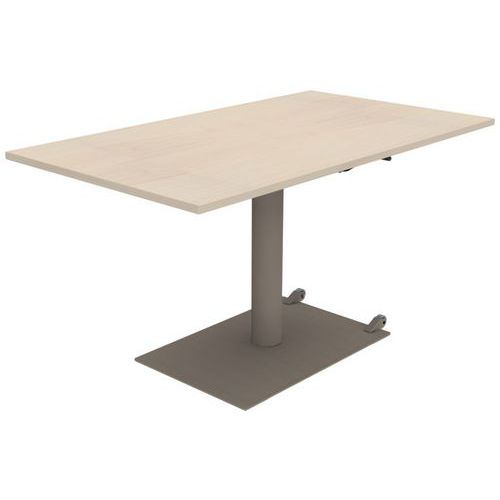 Table Mano mobile rectangulaire hauteur réglable plateau stratifié ABS Mobidecor Approche écoresponsable : oui Chants matériau : ABS Emballage recyclé : 82 % Environnement : Milieu restauration hospitalière Finitions : Stratifié Forme : Rectangle Fréquence d'utilisation : Régulière Garantie client : 5 ans Hauteur maxi : 90 cm Hauteur réglable mini : 67 cm Licence PEFC : 10312552 Livré monté : oui Longueurs : 140 cm Piétement coloris : Marron Piétement matériaux : Acier Plateau coloris : Érable Plateau matériau : Aggloméré Poids du produit : 45.3 kg Produit recyclable : Oui 100 % Produit recyclé : 73 % Profondeur : 80 cm Type de piétement : Central Usage : Collectivité Table Mano mobile réglable en hauteur avec plateau stratifié contrebalancé chant ABS. Contact au sol par caoutchouc adhésifs et 2 roulettes. Piètement avec 1 tube acier et 4 supports plateau soudés. Réglage en hauteur avec manivelle. 1 embase en tôle acier. Table Mano mobile rectangulaire hauteur réglable plateau stratifié ABS Mobidecor, Longueur: 140 cm, Profondeur: 80 cm, Plateau matériau: Aggloméré, Piétement coloris: Marron, Plateau coloris: Érable, Type de piétement: Central, Finition: Stratifié, Livré monté: oui, Chants matériau: ABS, Fréquence d'utilisation: Régulière, Emballage recyclé: 82 %, Produit recyclable: Oui 100 %, Produit recyclé: 73 %, Piétement matériau: Acier, Approche écoresponsable: oui, Poids du produit: 45.3 kg, Usage: Collectivité, Hauteur maxi: 90 cm, Hauteur réglable mini: 67 cm, Forme: Rectangle, Licence PEFC: 10312552