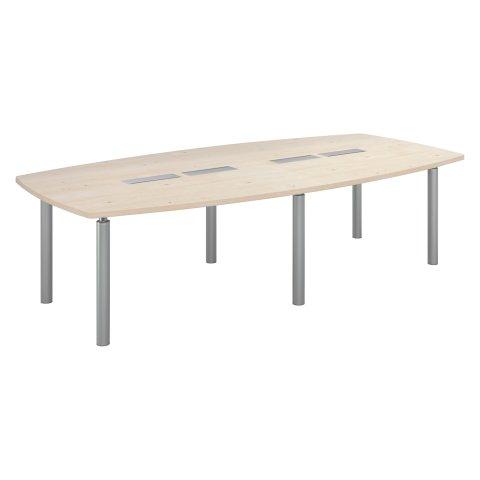 - Adoptez la table modulable Belem, idéale pour vos réunions professionnelles grâce à son design pratique et fiable.Composition : Plateau ovale en panneaux de particules mélaminées haute résistance, traité antireflets, assurant robustesse et longévité. Angles arrondis avec chants droits antichoc pour un confort d’utilisation optimal.Équipée de 2 modules doubles pour le passage de câbles (L 60 cm) et de 2 goulottes passe-câbles (L 90 cm) sous le plateau pour une installation facilitée des équipements informatiques.Structure stable grâce à ses 6 pieds en tube acier de diamètre 80 mm.Dimensions : Épaisseur du plateau : 30 mm. Hauteur : 74 cm. Profondeur : 140 cm. Longueur : 280 cm adaptée pour environ 10 personnes et 380 cm adaptée pour environ 14 personnes, Montage :• Livré démonté. Montage en option.Normes et environnement :Ce produit est écoresponsable, certifié PEFC. Ce label international garantit une gestion durable des forêts ainsi que l’origine et la traçabilité du bois utilisé.