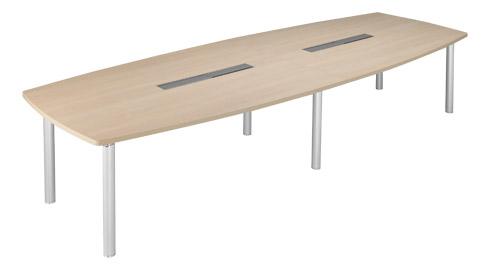 - Adoptez la table modulable Belem, idéale pour vos réunions professionnelles grâce à son design pratique et fiable.Composition : Plateau ovale en panneaux de particules mélaminées haute résistance, traité antireflets, assurant robustesse et longévité. Angles arrondis avec chants droits antichoc pour un confort d’utilisation optimal.Équipée de 2 modules doubles pour le passage de câbles (L 60 cm) et de 2 goulottes passe-câbles (L 90 cm) sous le plateau pour une installation facilitée des équipements informatiques.Structure stable grâce à ses 6 pieds en tube acier de diamètre 80 mm.Dimensions : Épaisseur du plateau : 30 mm. Hauteur : 74 cm. Profondeur : 140 cm. Longueur : 280 cm adaptée pour environ 10 personnes et 380 cm adaptée pour environ 14 personnes, Montage :• Livré démonté. Montage en option.Normes et environnement :Ce produit est écoresponsable, certifié PEFC. Ce label international garantit une gestion durable des forêts ainsi que l’origine et la traçabilité du bois utilisé.