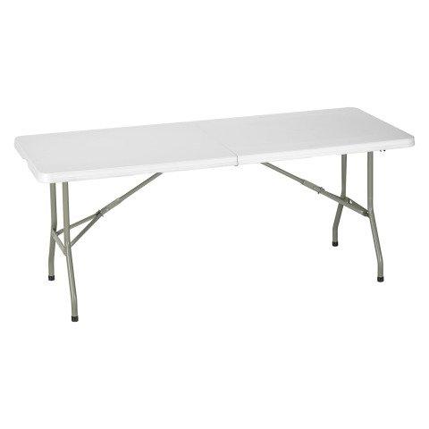Descriptif du produit :- Table rectangulaire pliable en deux et transportable par poignée. Pratique et gain de place.Pour 6 à 8 personnes.Composition:Plateau: Polyéthylène Haute Densité (PEHD) blanc de 4.5 cm d'épaisseur Structure en acier finition peinture époxy grise. 4 pieds tube de 28 mm2 barres de soutien à l'arrière du plateau sont fixées à l'aide de 2 loquetsDimensions table ouverte: L 182 x P 75 x H 7 ...