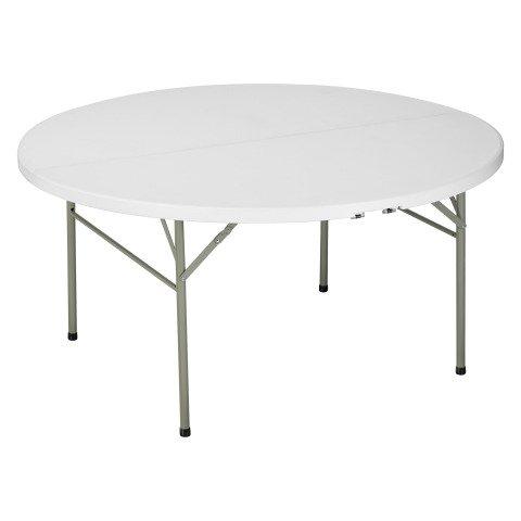 Descriptif du produit :- Table ronde pliable en deux et transportable par poignée. Pratique et prenant moins de place Pour 8 à 10 personnesComposition:Plateau: Polyéthylène Haute Densité (PEHD) blanc de 4.5 cm d'épaisseur Structure en acier finition peinture époxy grise. 4 pieds tube de 28 mm2 barres de renforts entre les pieds pour renforcer la stabilité de la tableDimensions: D 154 x H 74 cm Espacement entre l ...