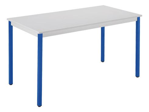 TABLE DE RÉUNION MULTIFORME CLASSIQUE RECTANGULAIRE L120 X P60 CM PLATEAU GRIS CLAIR PIÈTEMENT BLEU