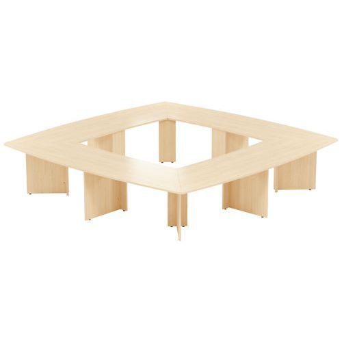 Table réunion Atem 16 personnes pieds panneaux MBA Capacité (nb de personnes) : 16 Finition : Mélaminée Forme : Carré Garantie client : 10 ans Hauteur : 74 cm Largeur : 350 cm Longueur hors tout : 350 cm Montage : À monter Piétement coloris : Blanc Piétement matériau : Aggloméré Plateau coloris : Chêne Plateau matériau : Aggloméré Profondeur hors tout : 350 cm Type de piétement : Panneau Table réunion Atem 16 personnes pieds panneaux Plateau en panneau de particules agglomérées haute densité (680 kg/m3) et classé non feu catégorie M3 revêtu de mélaminé ép 25mm. Chant épaisseur 2 mm plaqué sur la périphérie du panneau. Inserts métalliques intégrés sous le plateau pour faciliter le montage et remontage des pieds et platine de liaison pour assemblage des plateaux entre eux. Pieds panneaux en aggloméré fixation sous le plateau par un ensemble goujon + excentrique et équerre acier 30 x 30 mm. Vérins de réglage course de 15 mm. Table réunion Atem 16 personnes pieds panneaux, Type de piétement: Panneau, Hauteur: 74 cm, Largeur: 350 cm, Forme: Carré, Plateau matériau: Aggloméré, Plateau coloris: Chêne, Capacité (nb de personnes): 16, Longueur hors tout: 350 cm, Piétement coloris: Blanc, Profondeur hors tout: 350 cm, Montage: À monter, Piétement matériau: Aggloméré, Finition: Mélaminée