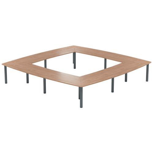 Table réunion Atem 20 personnes pieds ronds MBA Capacité (nb de personnes) : 20 Finition : Mélaminée Forme : Carré Garantie client : 10 ans Hauteur : 74 cm Largeur : 400 cm Longueur hors tout : 400 cm Montage : À monter Piétement coloris : Anthracite Piétement matériau : Acier Piétement Ø : 80 mm Plateau coloris : Noyer Plateau matériau : Aggloméré Profondeur hors tout : 400 cm Type de piétement : En I Table réunion Atem 20 personnes pieds ronds. Plateau en panneau de particules agglomérées haute densité (680 kg/m3) et classé non feu catégorie M3 revêtu de mélaminé ép 25mm. Chant épaisseur 2 mm plaqué sur la périphérie du panneau. Inserts métalliques intégrés sous le plateau pour faciliter le montage et remontage des pieds et platine de liaison pour assemblage des plateaux entre eux. Pieds tubes rond en acier finition époxy. Vérins de réglage course de 15 mm. Table réunion Atem 20 personnes pieds ronds, Type de piétement: En I, Hauteur: 74 cm, Largeur: 400 cm, Forme: Carré, Plateau matériau: Aggloméré, Plateau coloris: Noyer, Capacité (nb de personnes): 20, Longueur hors tout: 400 cm, Piétement coloris: Anthracite, Profondeur hors tout: 400 cm, Montage: À monter, Piétement Ø: 80 mm, Piétement matériau: Acier, Finition: Mélaminée