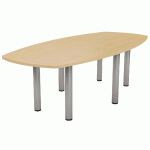 Plateau épaisseur 25 mm en mélaminé.Piètement tube métal Ø 80 mm revêtu époxy.Equipé de vérins de réglage.