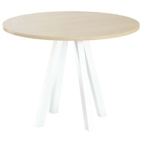 Table de réunion ronde Evan plateau mélaminée MBA Capacité (nb de personnes) : 4 Finition : Mélaminée Forme : Rond Garantie client : 10 ans Hauteur : 74 cm Largeur : 100 cm Piétement coloris : Blanc Piétement matériau : Acier Plateau coloris : Chêne Plateau épaisseur : 25 mm Plateau matériau : Aggloméré Plateau supérieur Ø : 100 cm Profondeur hors tout : 100 cm Type de piétement : 4 pieds Discrète et moderne, les tables Evan permettent d'agencer les pièces sans limite Panneau de particules agglomérées haute densité épaisseur 25 mm (680 kg/m3) et classé non feu catégorie M3 revêtu de mélaminé Chant épaisseur 2 mm plaqué avec de la colle thermo fusible sur la périphérie du panneau. Piètement central soudé sur platine fixée sous le plateau, tubes carrés en acier 50x50 mm épaisseur 2 mm incliné Vérins Ø 20mm avec réglage de 15mm Table de réunion ronde Evan plateau mélaminée, Type de piétement: 4 pieds, Hauteur: 74 cm, Largeur: 100 cm, Forme: Rond, Plateau matériau: Aggloméré, Plateau coloris: Chêne, Capacité (nb de personnes): 4, Piétement coloris: Blanc, Profondeur hors tout: 100 cm, Plateau supérieur Ø: 100 cm, Piétement matériau: Acier, Plateau épaisseur: 25 mm, Finition: Mélaminée