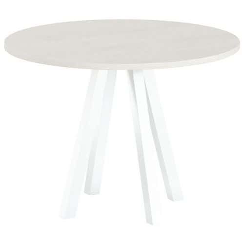 Table de réunion ronde Evan plateau mélaminée MBA Capacité (nb de personnes) : 4 Finition : Mélaminée Forme : Rond Garantie client : 10 ans Hauteur : 74 cm Largeur : 100 cm Piétement coloris : Blanc Piétement matériau : Acier Plateau coloris : Pin Plateau épaisseur : 25 mm Plateau matériau : Aggloméré Plateau supérieur Ø : 100 cm Profondeur hors tout : 100 cm Type de piétement : 4 pieds Discrète et moderne, les tables Evan permettent d'agencer les pièces sans limite Panneau de particules agglomérées haute densité épaisseur 25 mm (680 kg/m3) et classé non feu catégorie M3 revêtu de mélaminé Chant épaisseur 2 mm plaqué avec de la colle thermo fusible sur la périphérie du panneau. Piètement central soudé sur platine fixée sous le plateau, tubes carrés en acier 50x50 mm épaisseur 2 mm incliné Vérins Ø 20mm avec réglage de 15mm Table de réunion ronde Evan plateau mélaminée, Type de piétement: 4 pieds, Hauteur: 74 cm, Largeur: 100 cm, Forme: Rond, Plateau matériau: Aggloméré, Plateau coloris: Pin, Capacité (nb de personnes): 4, Piétement coloris: Blanc, Profondeur hors tout: 100 cm, Plateau supérieur Ø: 100 cm, Piétement matériau: Acier, Plateau épaisseur: 25 mm, Finition: Mélaminée