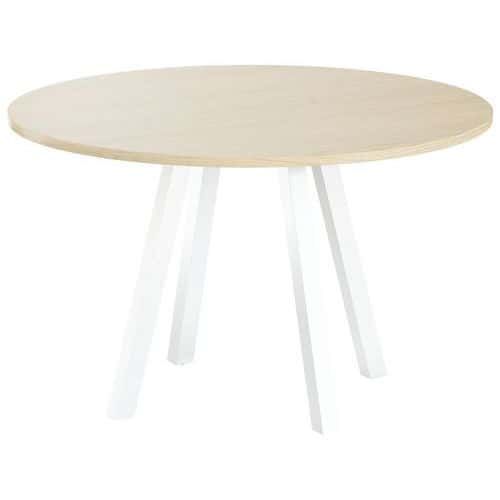 Table de réunion ronde Evan plateau mélaminée MBA Capacité (nb de personnes) : 5 Finition : Mélaminée Forme : Rond Garantie client : 10 ans Hauteur : 74 cm Largeur : 120 cm Piétement coloris : Blanc Piétement matériau : Acier Plateau coloris : Chêne Plateau épaisseur : 25 mm Plateau matériau : Aggloméré Plateau supérieur Ø : 120 cm Profondeur hors tout : 120 cm Type de piétement : 4 pieds Discrète et moderne, les tables Evan permettent d'agencer les pièces sans limite Panneau de particules agglomérées haute densité épaisseur 25 mm (680 kg/m3) et classé non feu catégorie M3 revêtu de mélaminé Chant épaisseur 2 mm plaqué avec de la colle thermo fusible sur la périphérie du panneau. Piètement central soudé sur platine fixée sous le plateau, tubes carrés en acier 50x50 mm épaisseur 2 mm incliné Vérins Ø 20mm avec réglage de 15mm Table de réunion ronde Evan plateau mélaminée, Type de piétement: 4 pieds, Hauteur: 74 cm, Largeur: 120 cm, Forme: Rond, Plateau matériau: Aggloméré, Plateau coloris: Chêne, Capacité (nb de personnes): 5, Piétement coloris: Blanc, Profondeur hors tout: 120 cm, Plateau supérieur Ø: 120 cm, Piétement matériau: Acier, Plateau épaisseur: 25 mm, Finition: Mélaminée